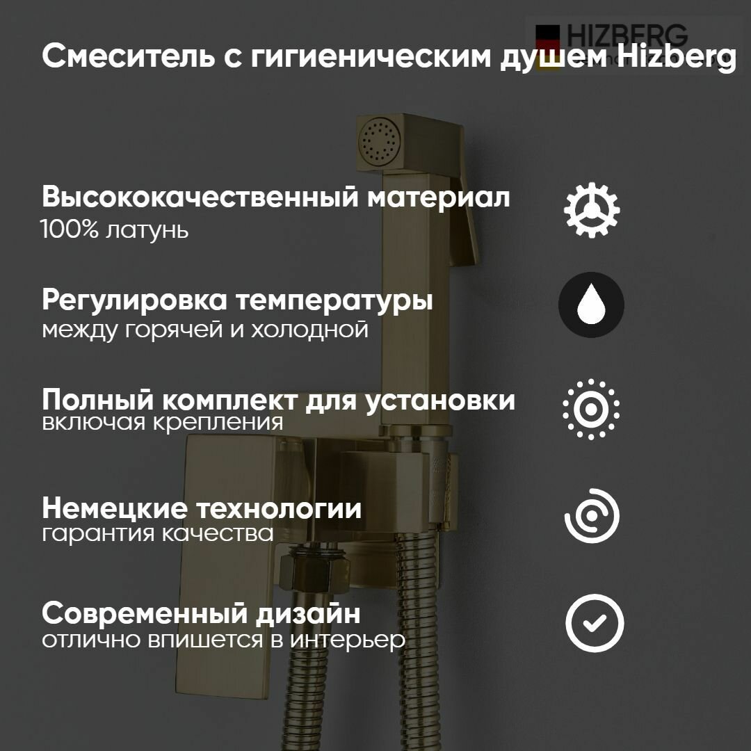 Смеситель с гигиеническим душем Wergrauf FH-01GL. Гигиенический душ. Биде душ матовое золото светлое интересное: