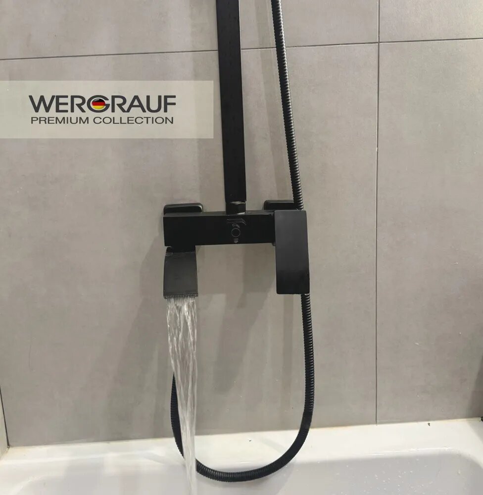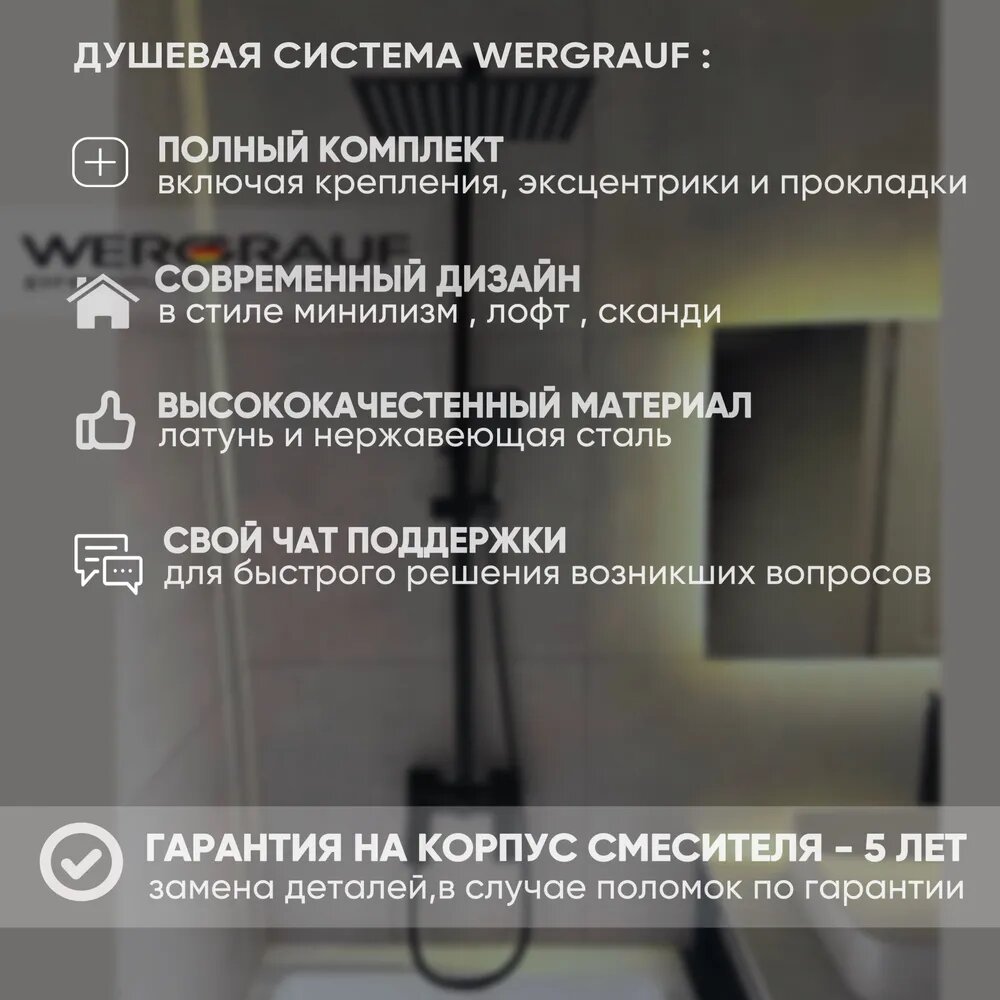 Душевая система Wergrauf 3W-25B с тропическим душем 25х25 цвет черный интересное: