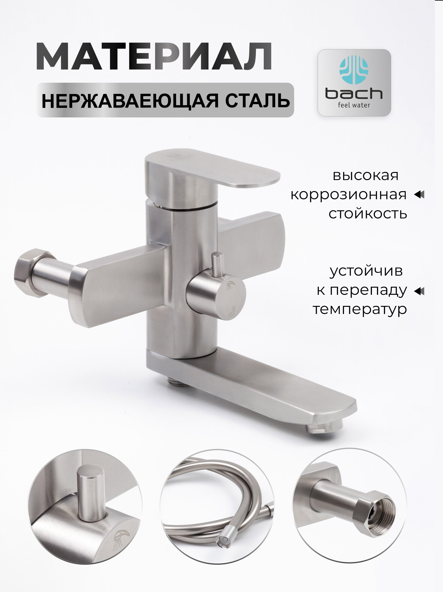 Смеситель для ванны с душем с коротким изливом Bach / Код 16245 интересное: