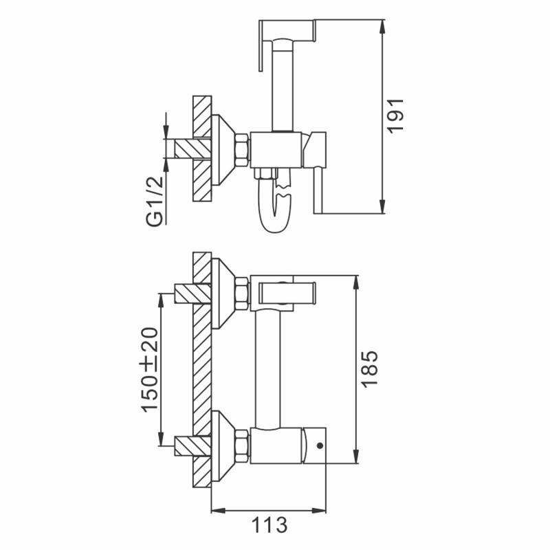 Гигиенический душ с настенным смесителем Frap F7503-9 оружейная сталь