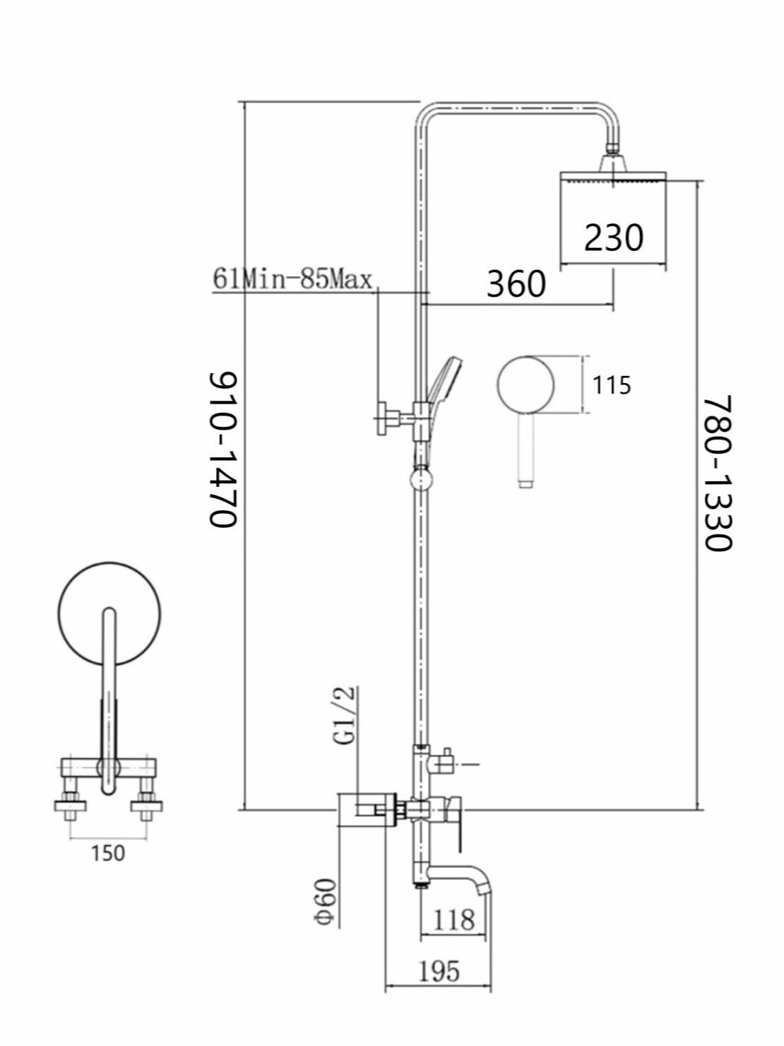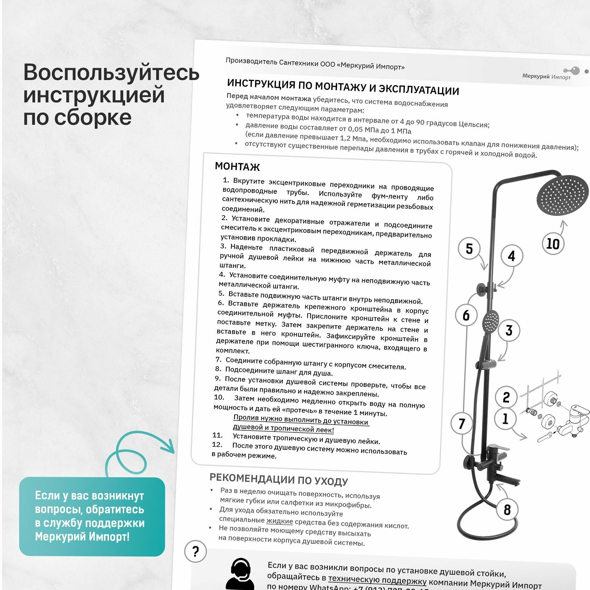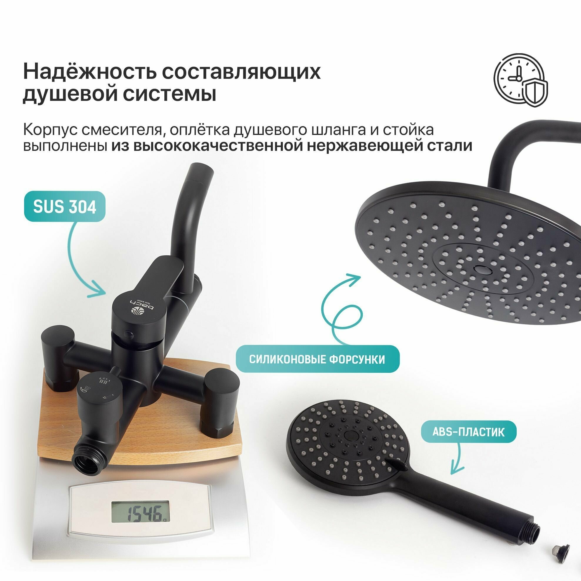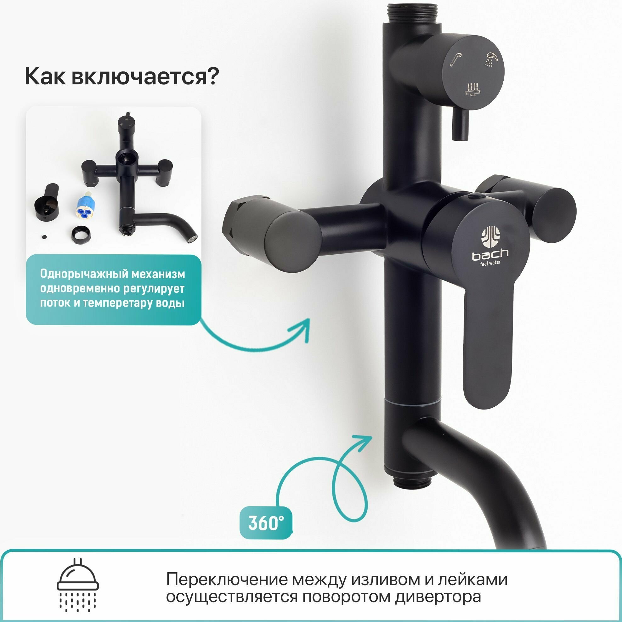 Душевая система Bach 15556, с тропическим дождем, нержавеющая сталь, черная интересное: