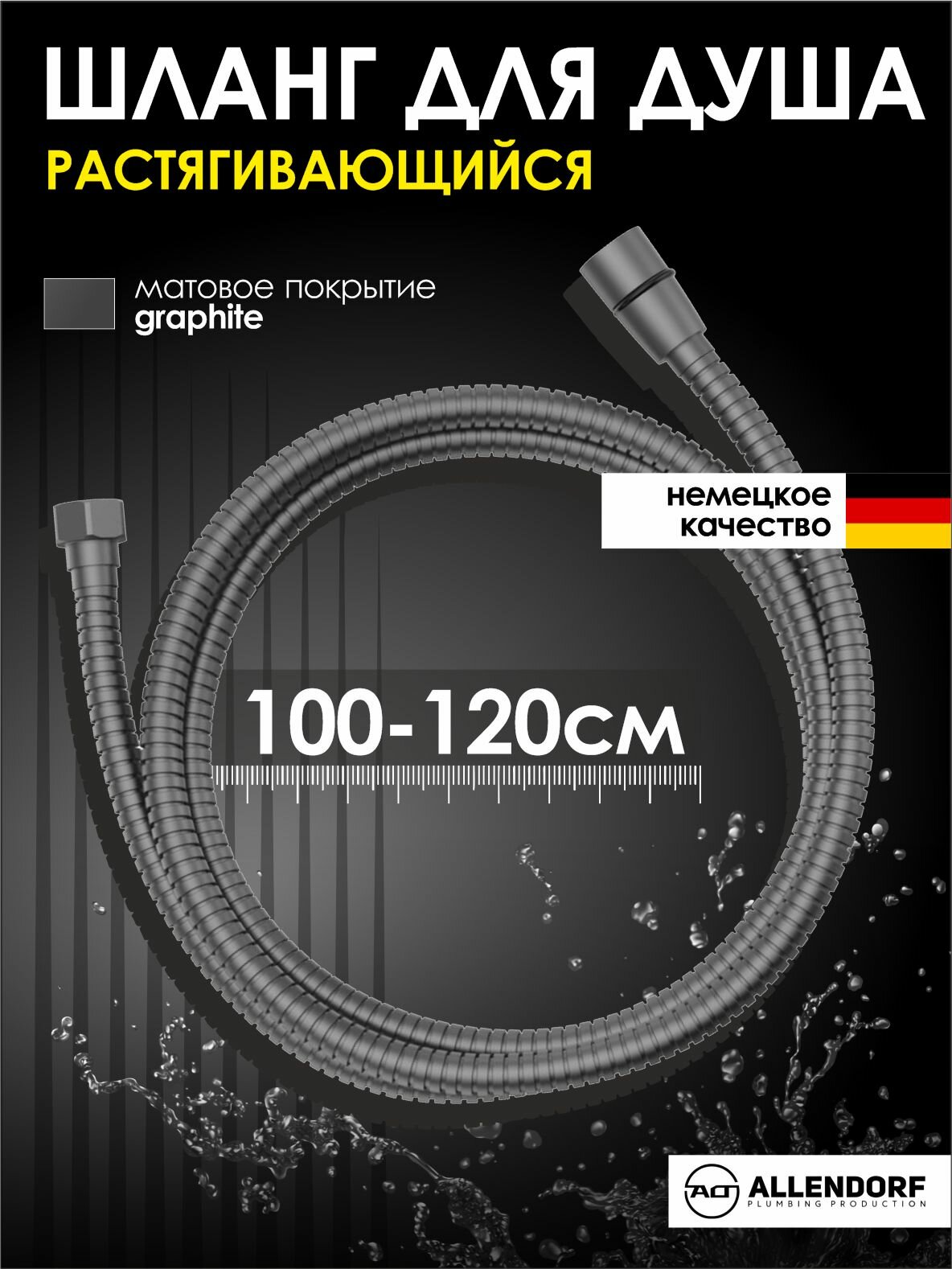 Шланг для душа для гигиенической лейки 100 см ALLENDORF AD-7706 Gun Metal нержавеющая сталь, графит интересное:
