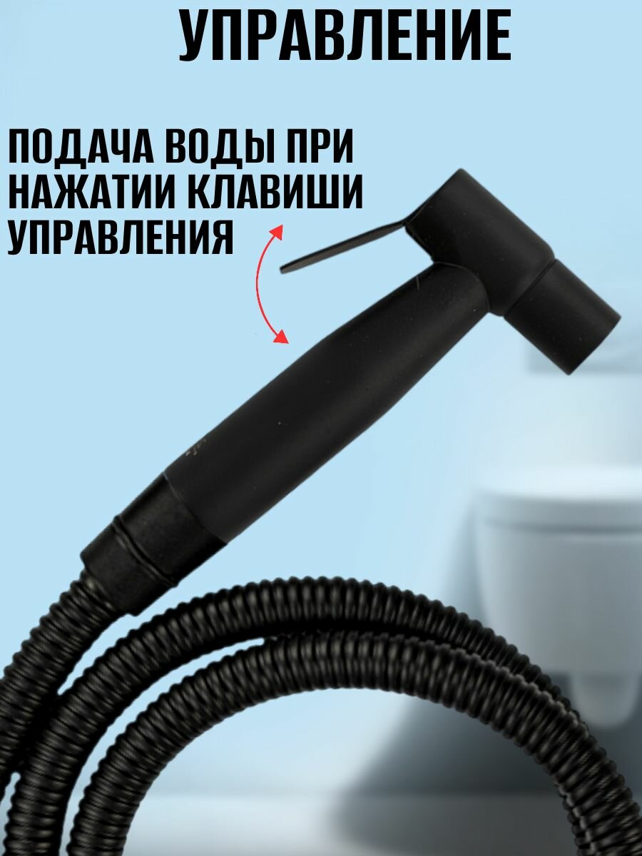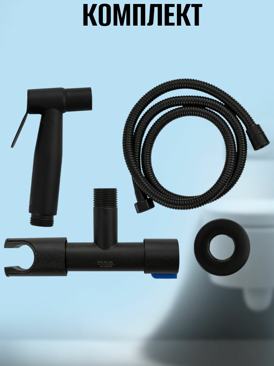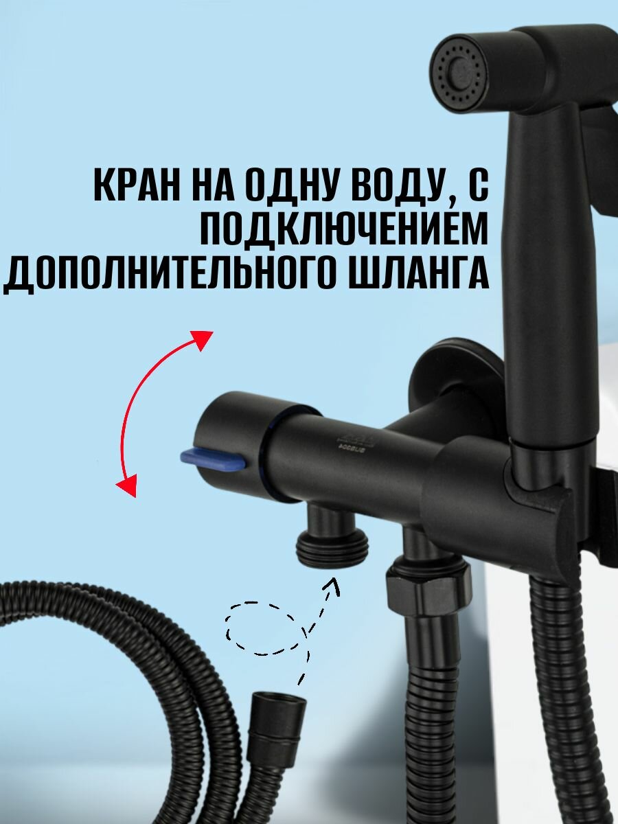 Набор с гигиеническим душем, кран с выходом для подключения к унитазу, лейка, шланг, поворотный кронштейн, цвет черный. интересное: