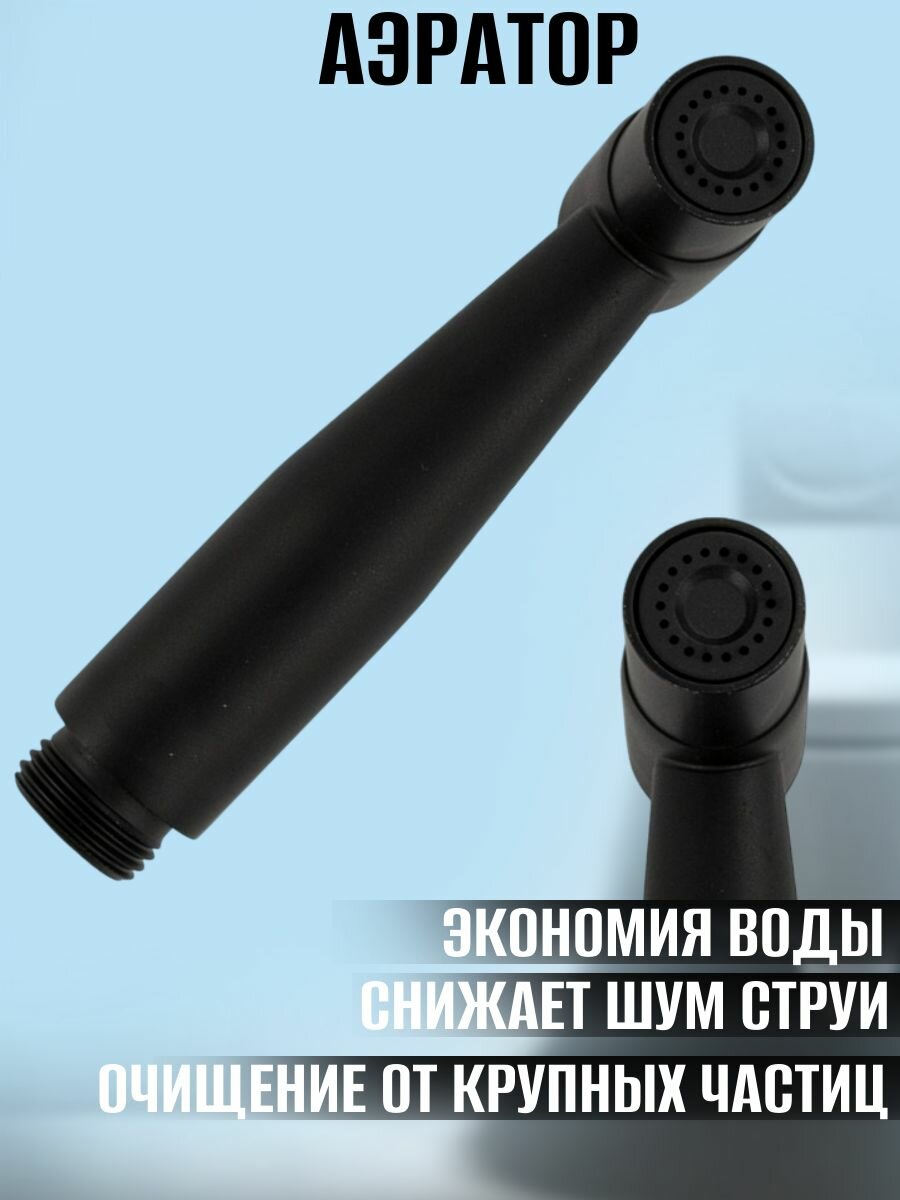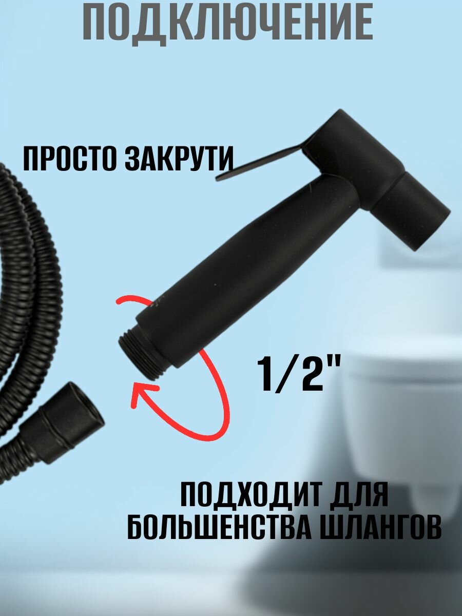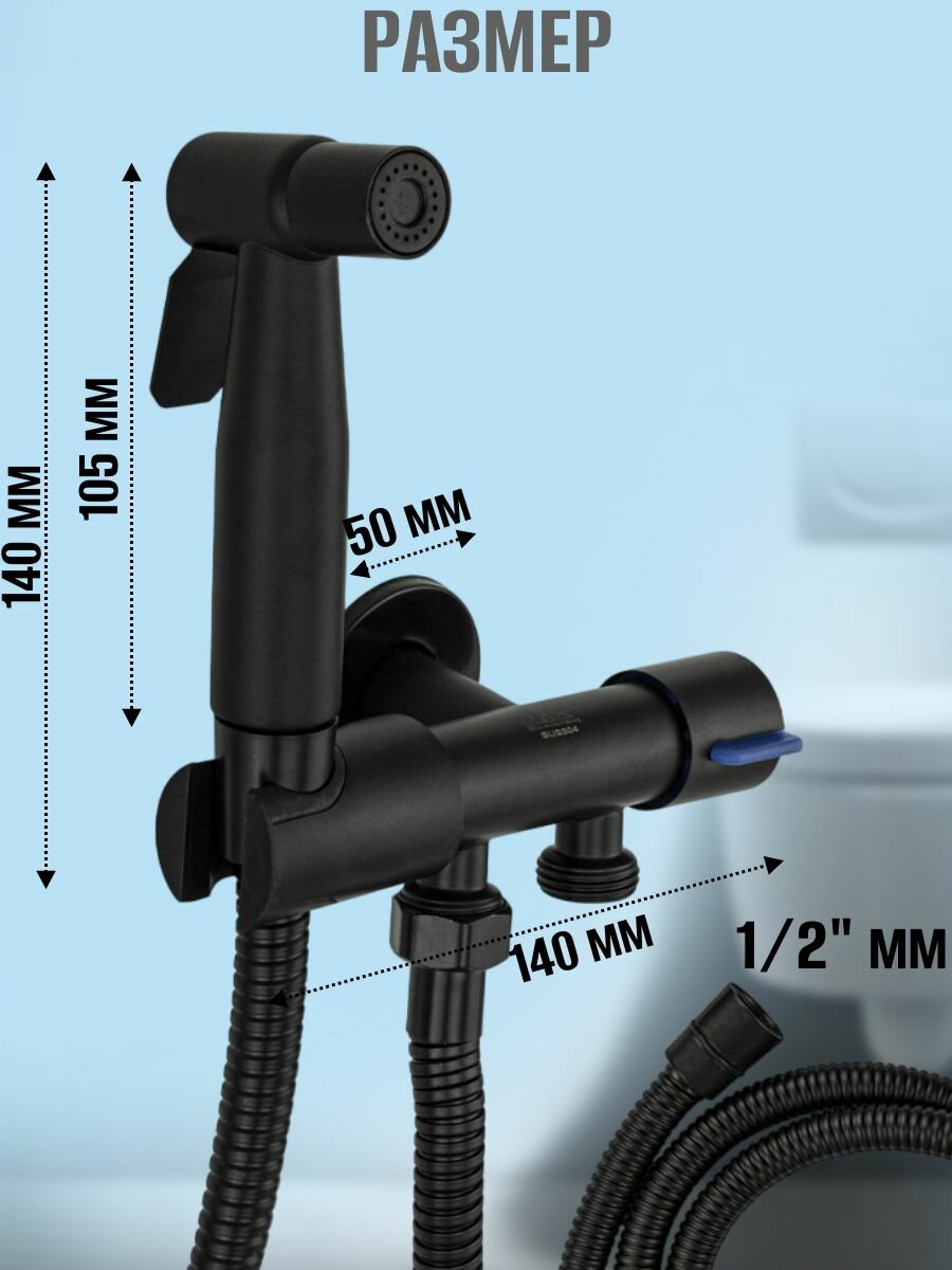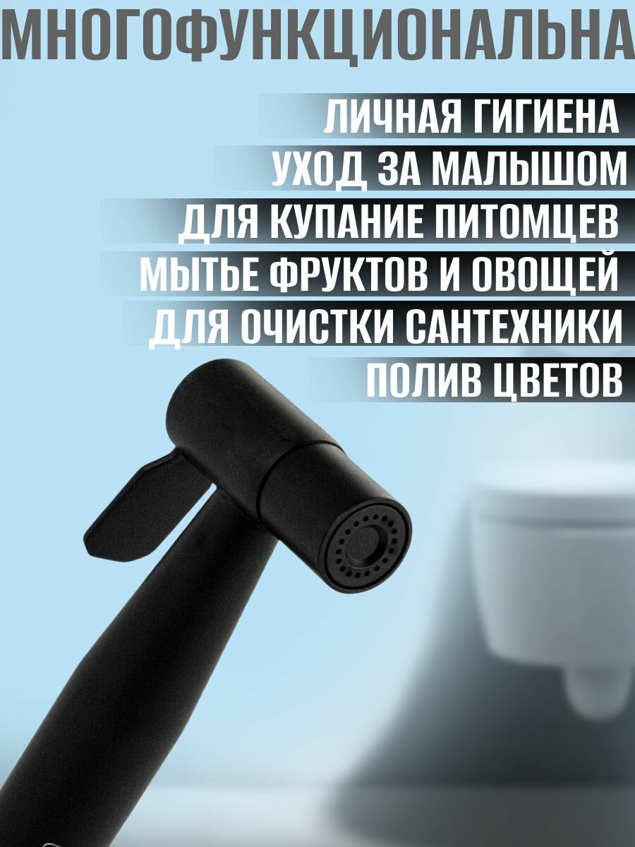 Набор с гигиеническим душем, кран с выходом для подключения к унитазу, лейка, шланг, поворотный кронштейн, цвет черный. интересное: