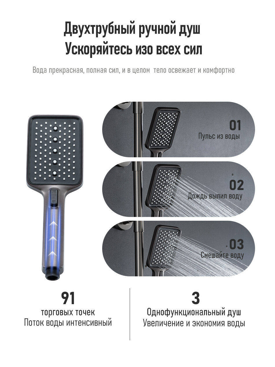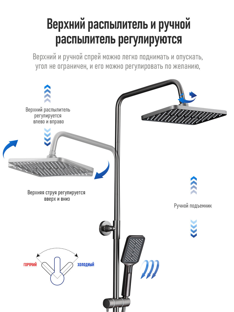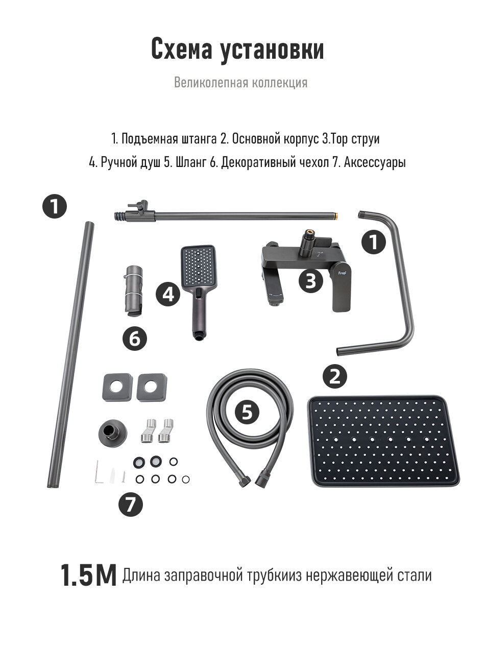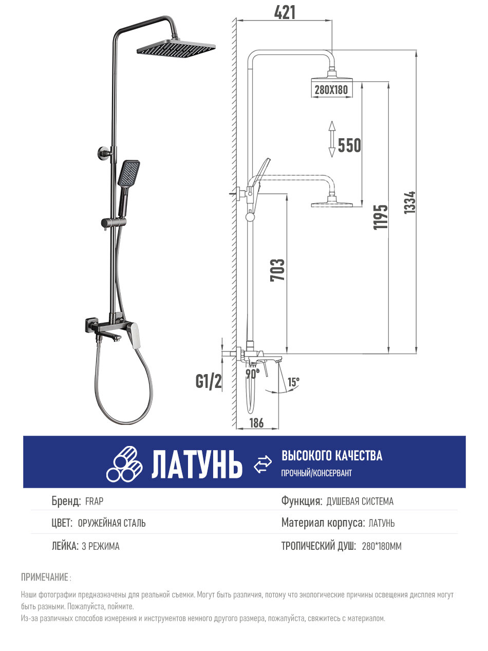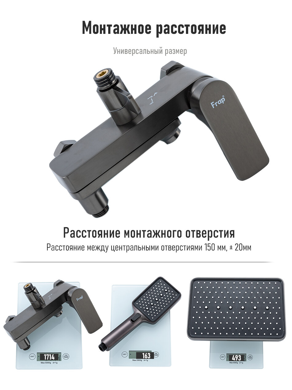 Душевая система с тропическим душем и смесителем Frap F2486-9 оружейная сталь интересное: