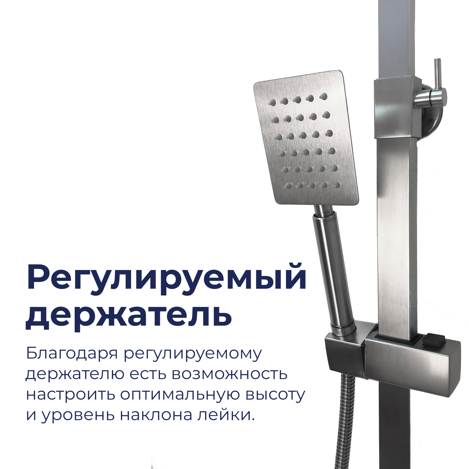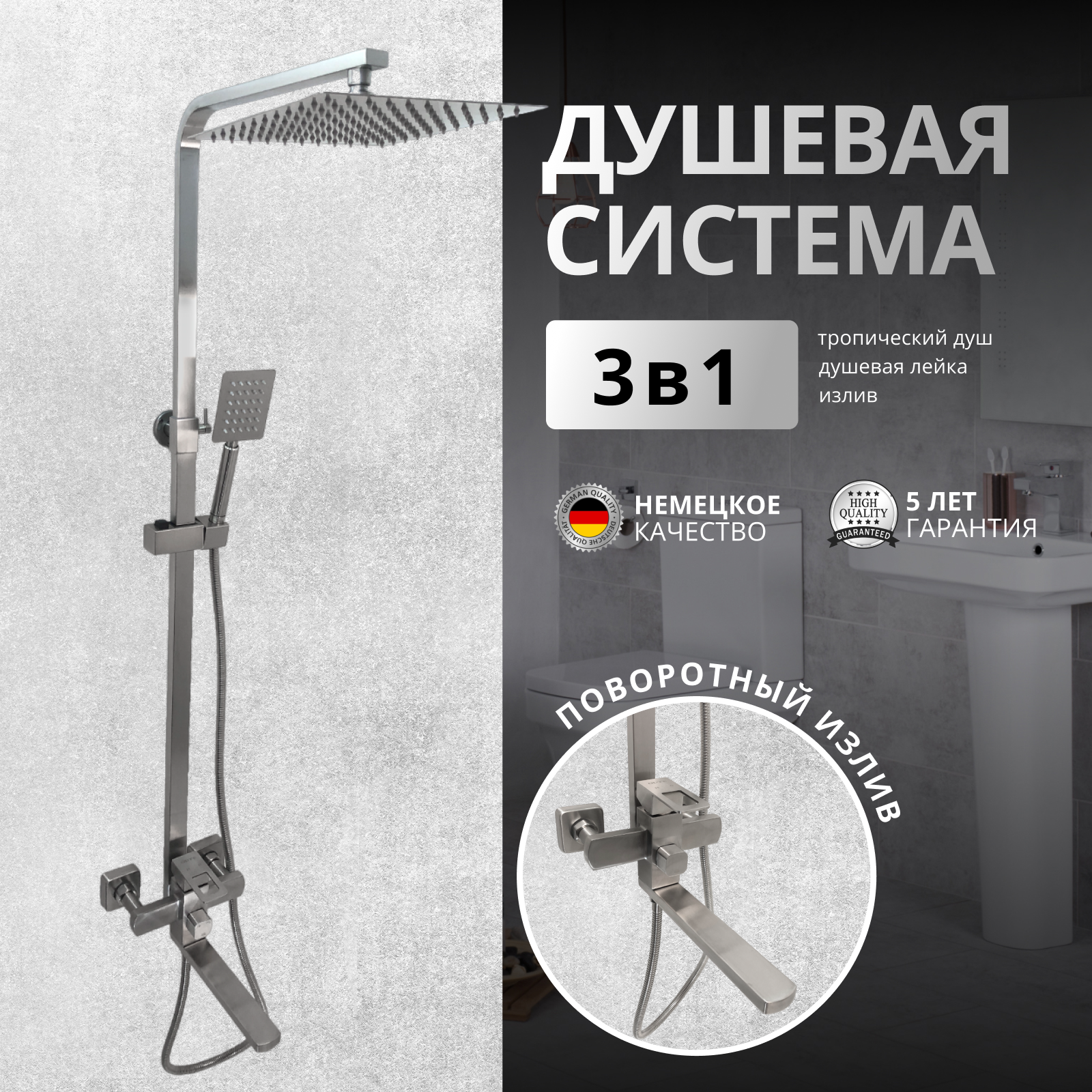 Купить Душевая система c тропическим душем и смесителем хром матовый / Душевой гарнитур сатин матовый / Нержавеющая сталь