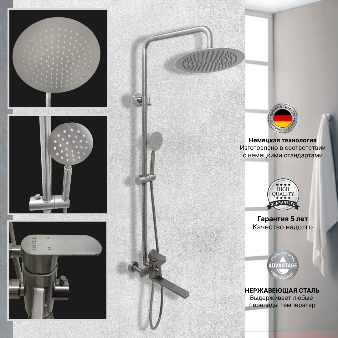 Душевая система с тропическим душем хром матовый / Душевой гарнитур / Смеситель для ванны и душа / Нержавеющая сталь / Сатин интересное: