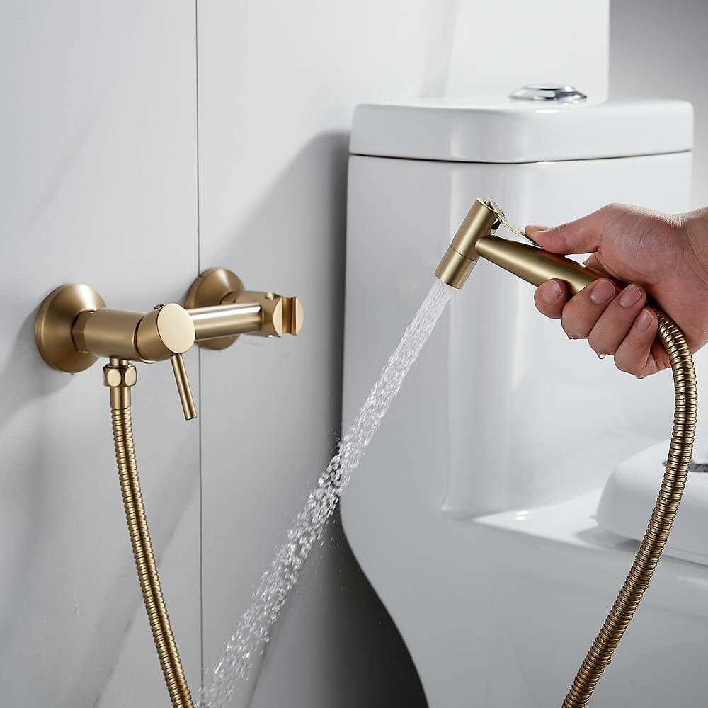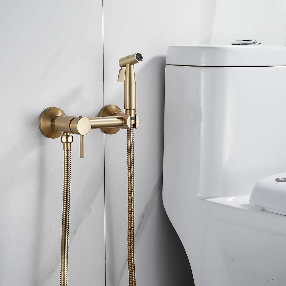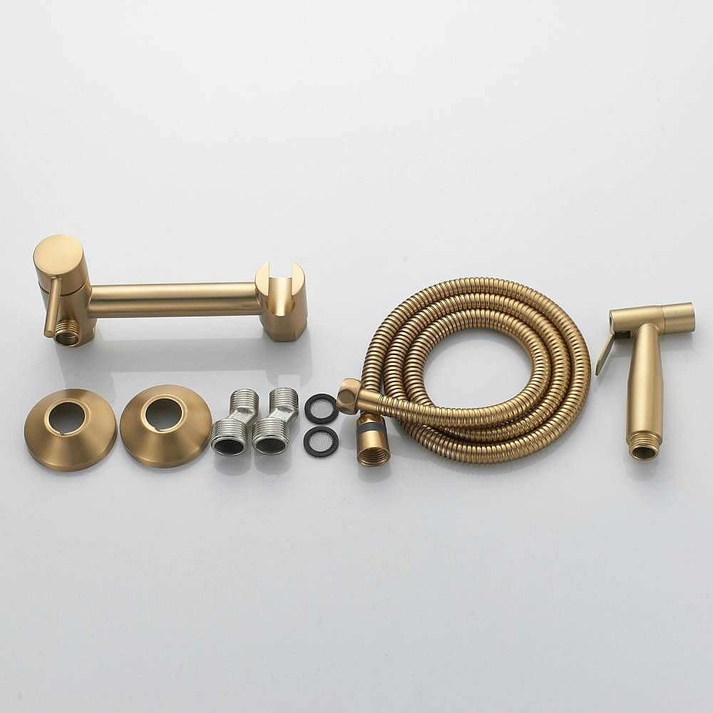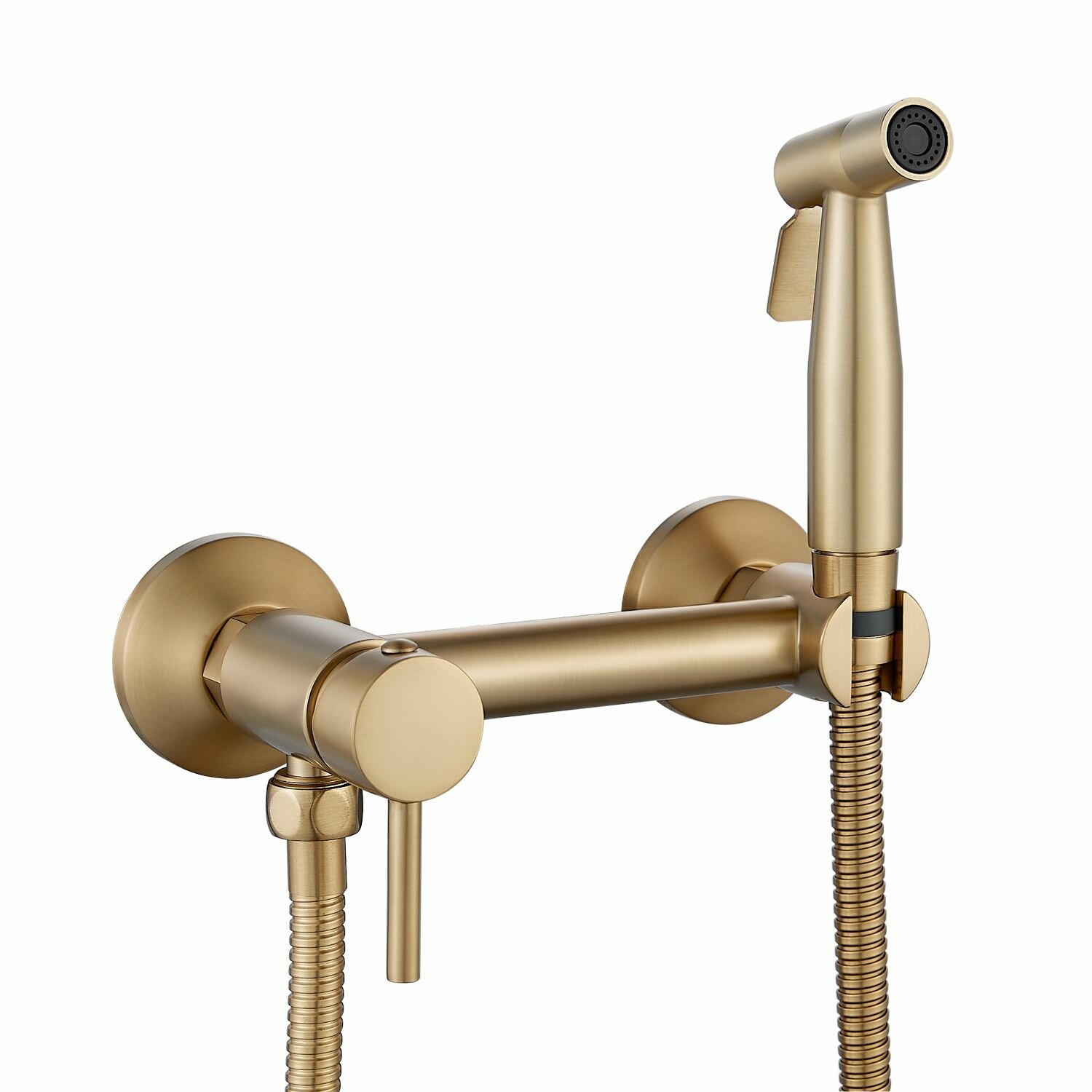 Смеситель с гигиеническим душем Shevanik S107G золотой сатин, латунь интересное: