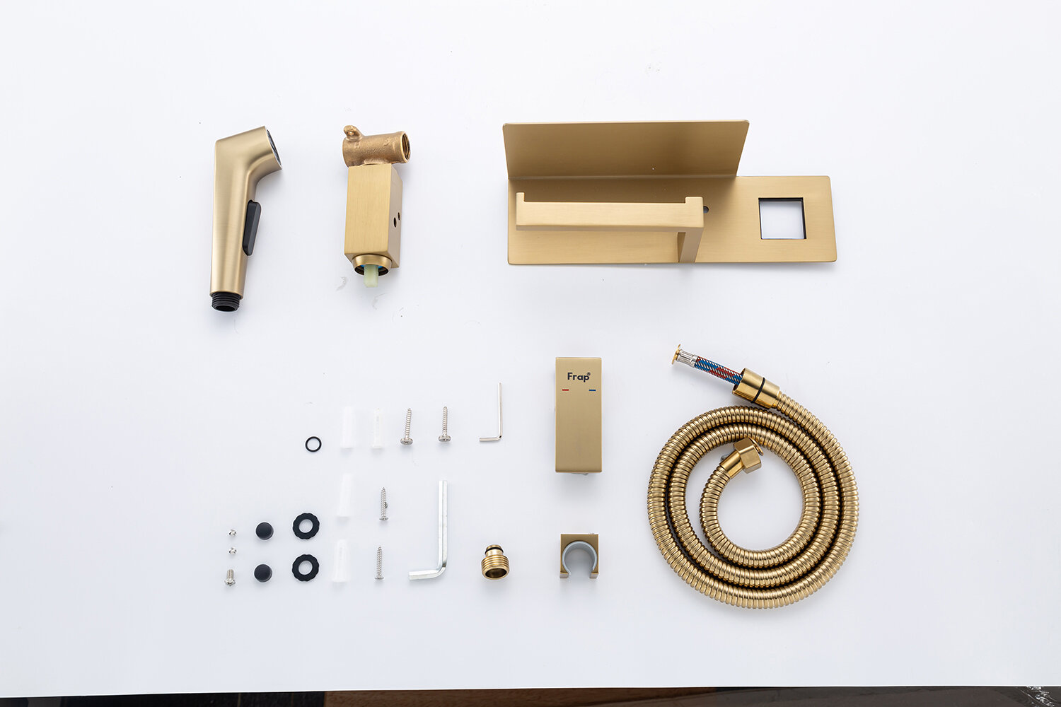 Купить Гигиенический душ Frap F2075-3 с бумагодержателем, золотой сатин