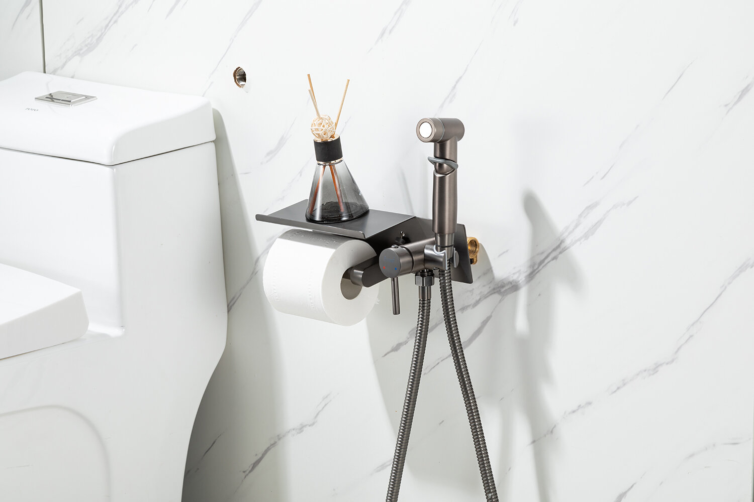 Гигиенический душ Frap F2075-19 с бумагодержателем, графит, латунь, PVD покрытие, переключение рычажное интересное: