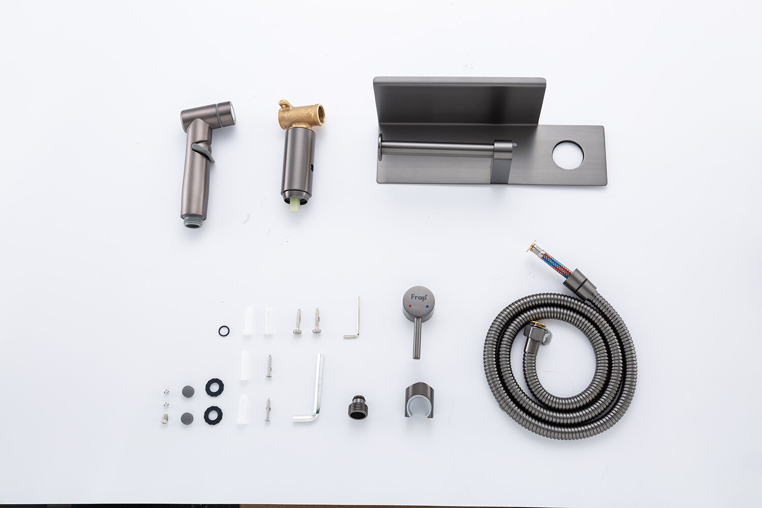 Купить Гигиенический душ Frap F2075-19 с бумагодержателем, графит, латунь, PVD покрытие, переключение рычажное