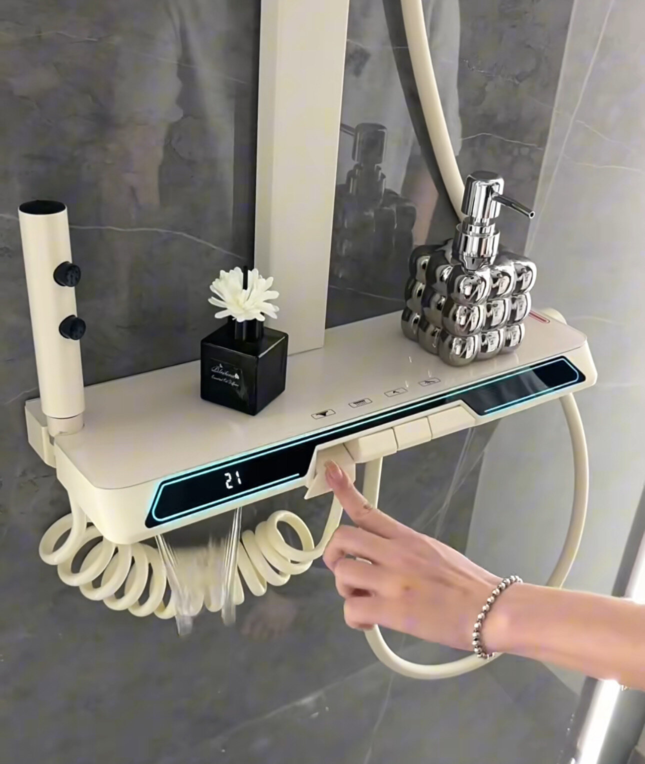 Душевая система с тропическим душем Душевой комплект для душа и ванны с датчиком и с подсветкой бежевый интересное: