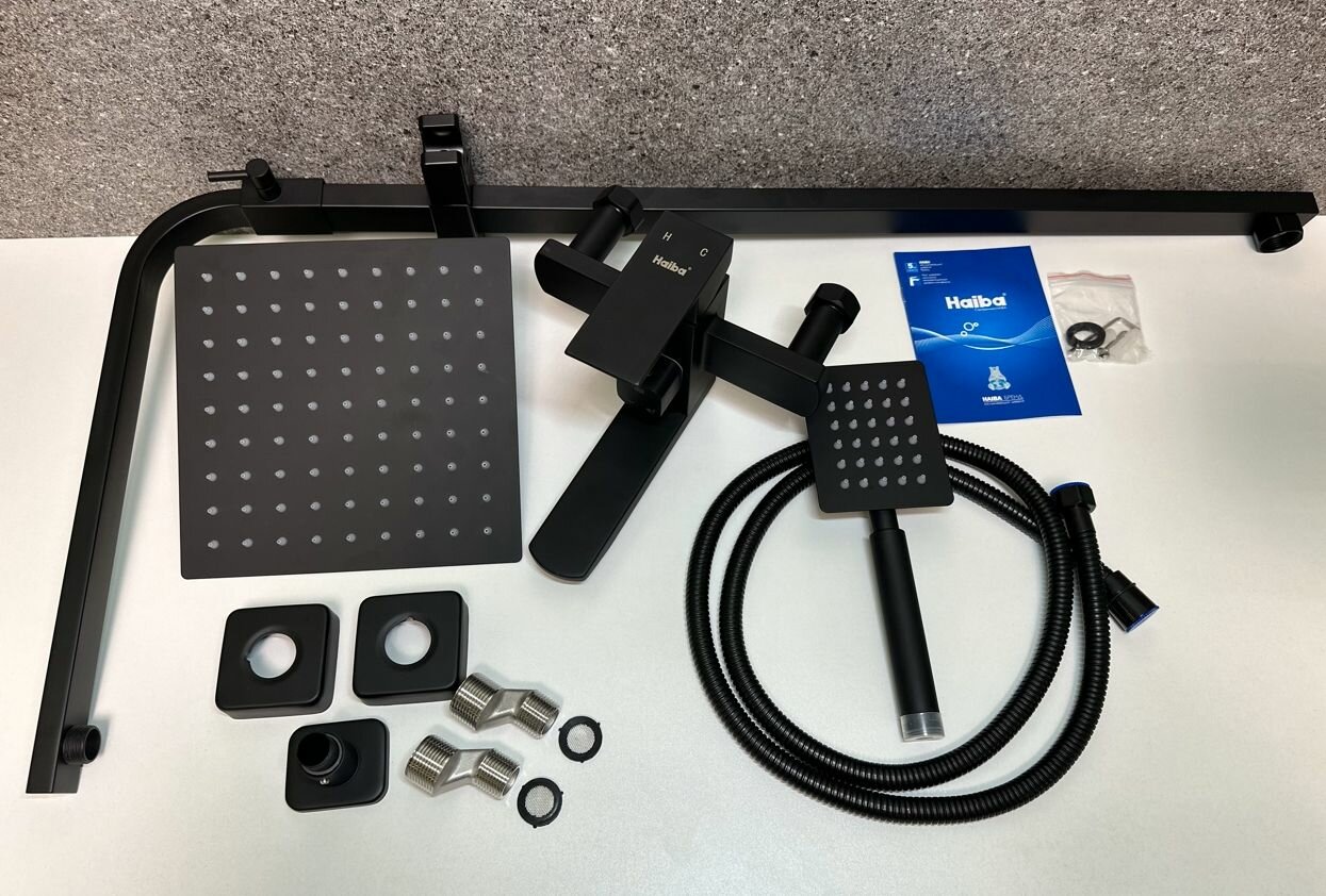 Душевой комплект HAIBA, смеситель для раковины + душевая система HB23803-7+HB10803-7, нержавеющая сталь, черный интересное: