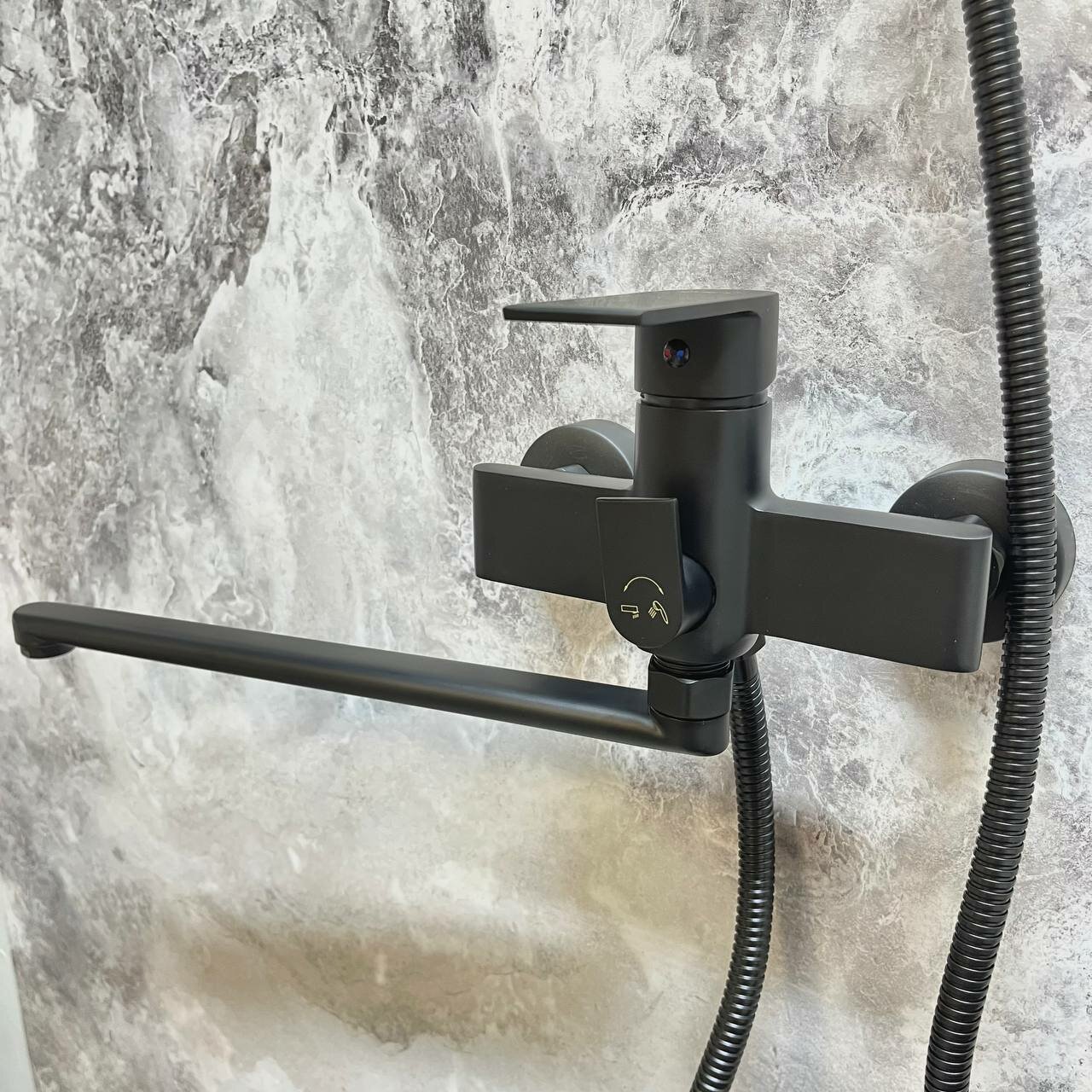 Смеситель для ванны D-LIN D147363-A с поворотным изливом, ручной лейкой, черный. интересное: