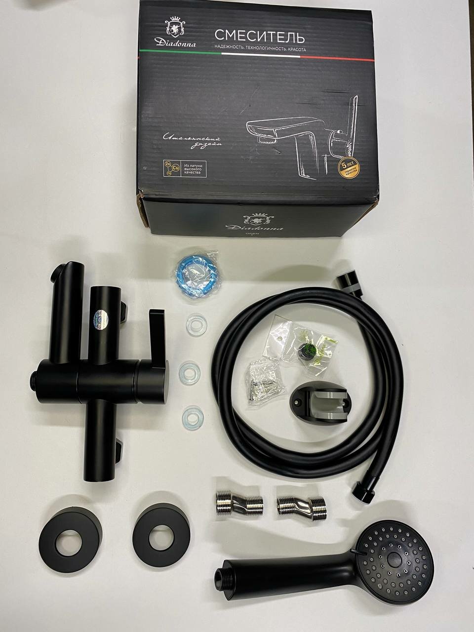 Смеситель для ванны с душем Diadonna D236-30BL однорыжачный, с коротким изливом, кран в ванную с душевой лейкой, черный интересное: