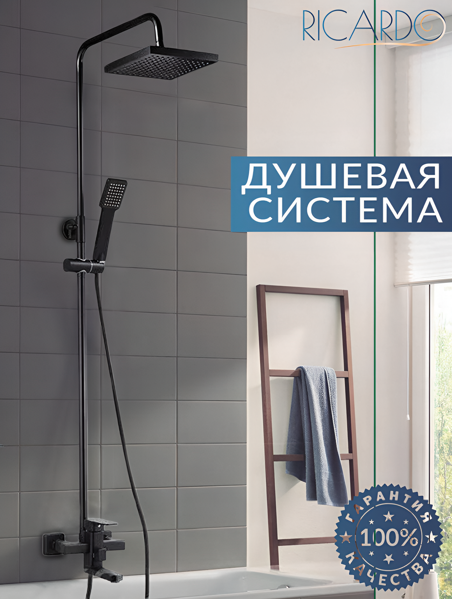 Душевая система с тропическим душем, смеситель для ванны, комплект RICARDO R1683-3, высота 170 см, черный интересное: