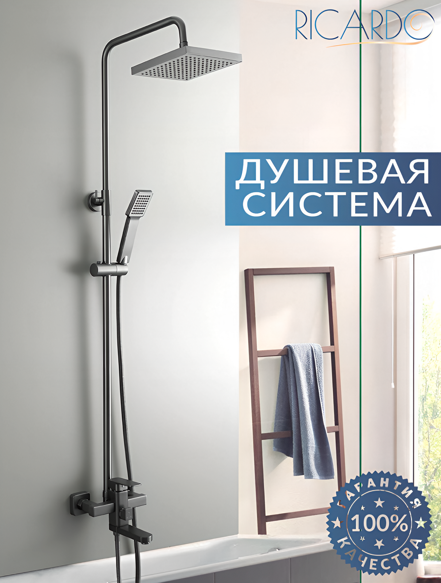 Душевая система с тропическим душем, смеситель для ванны, комплект RICARDO R1683-2, серый графит, max высота 1,63 м интересное: