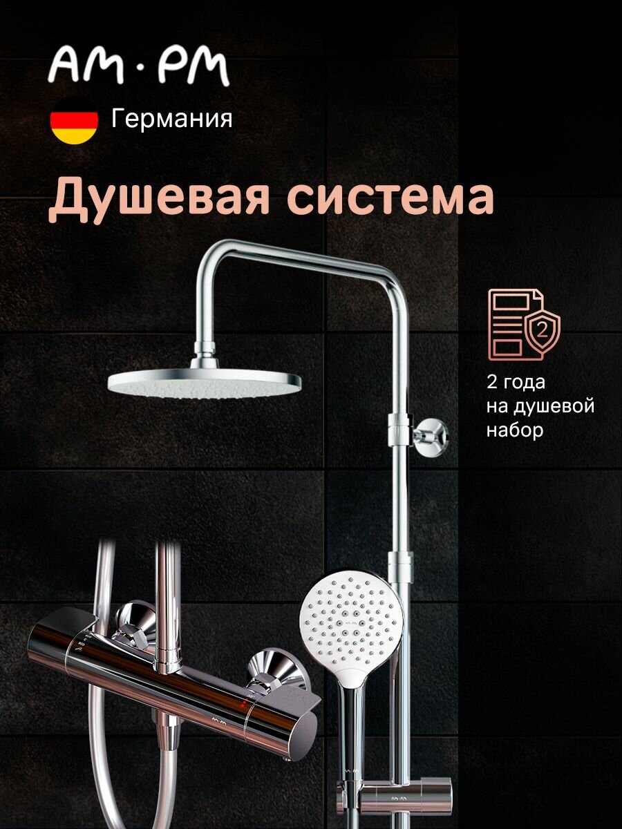 Душевая система с тропическим душем и смесителем AM.PM Chic с термостатом, без излива, эргономичная ручка, хром интересное: