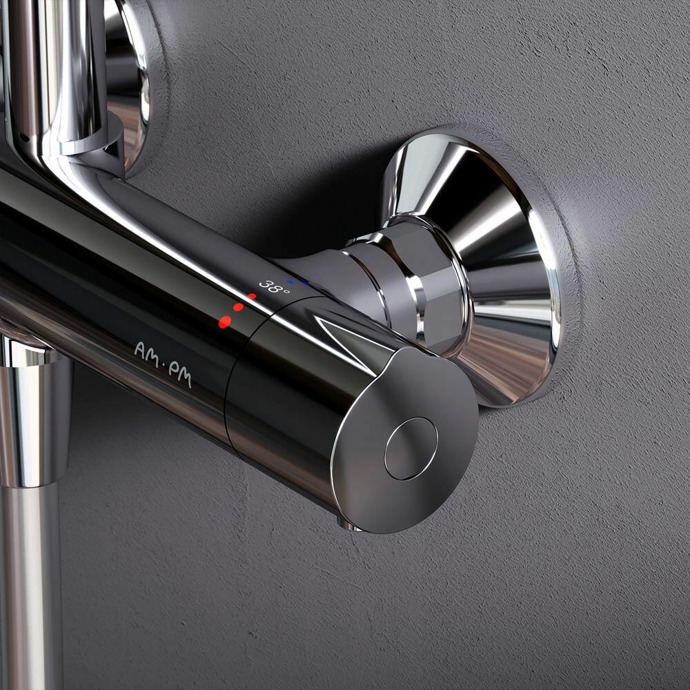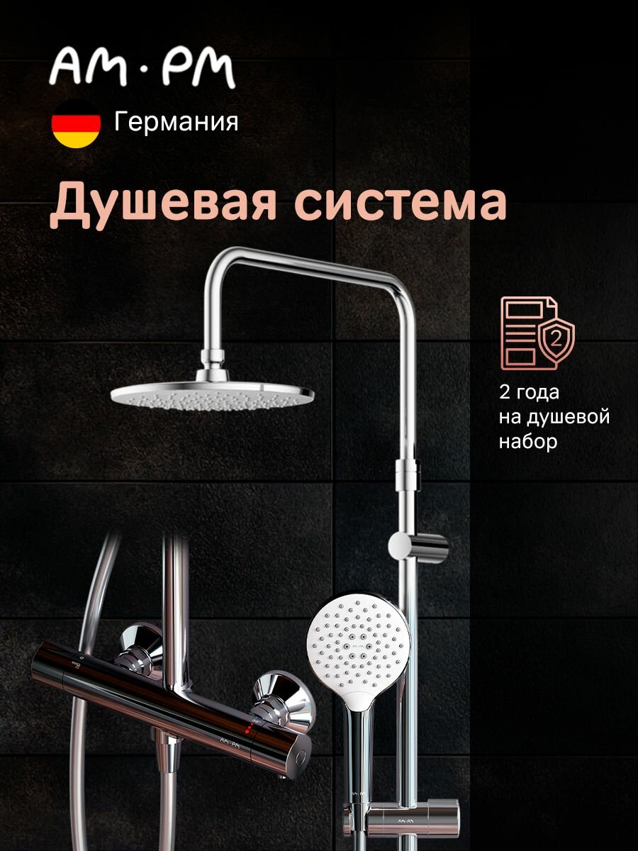 Душевая система с тропическим душем AM.PM Chic со смесителем, термостат со стопором безопасности, хром интересное:
