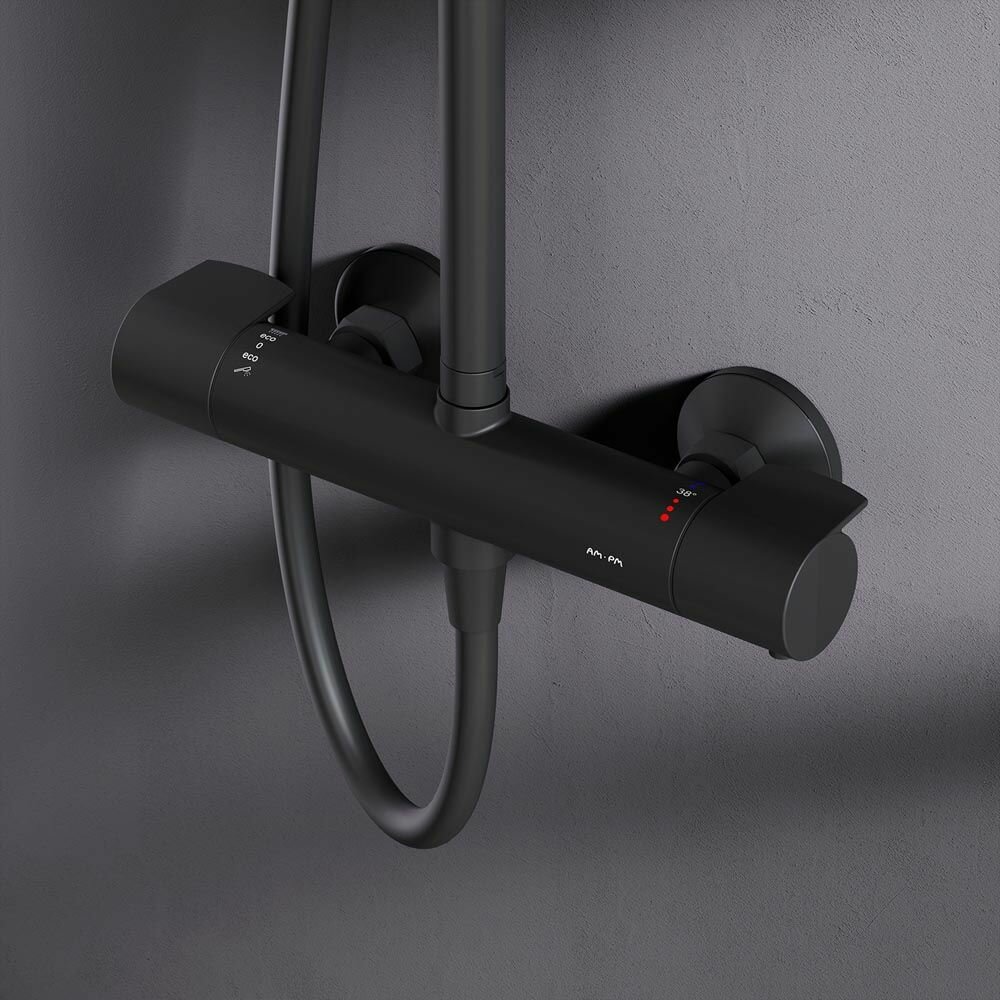 Душевая система с тропическим душем AM.PM Chic с термостатом, 3 режима лейки, латунь, черный
