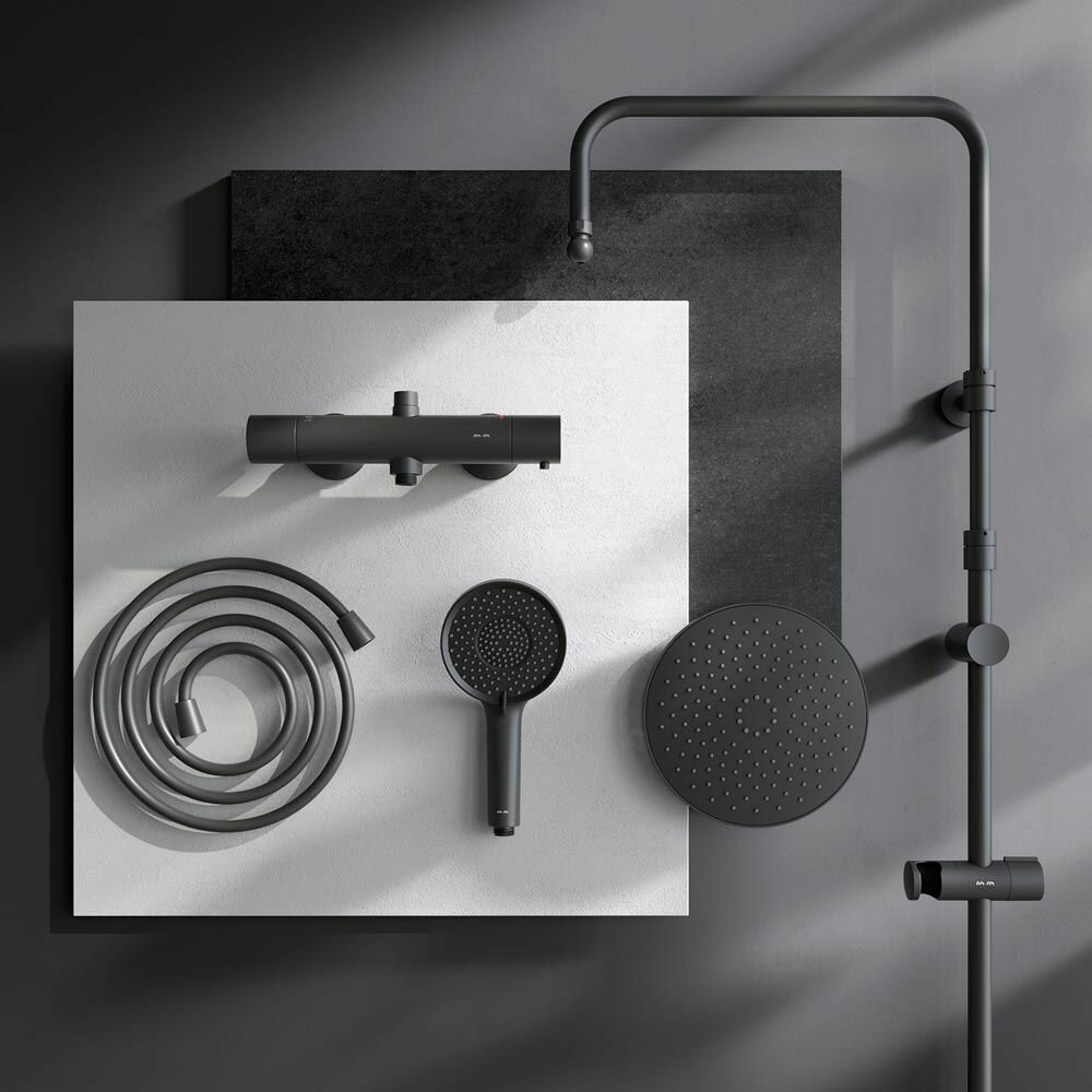 Душевая система с тропическим душем и смесителем AM.PM Chic, без излива, черная матовая интересное: