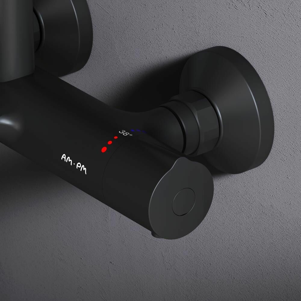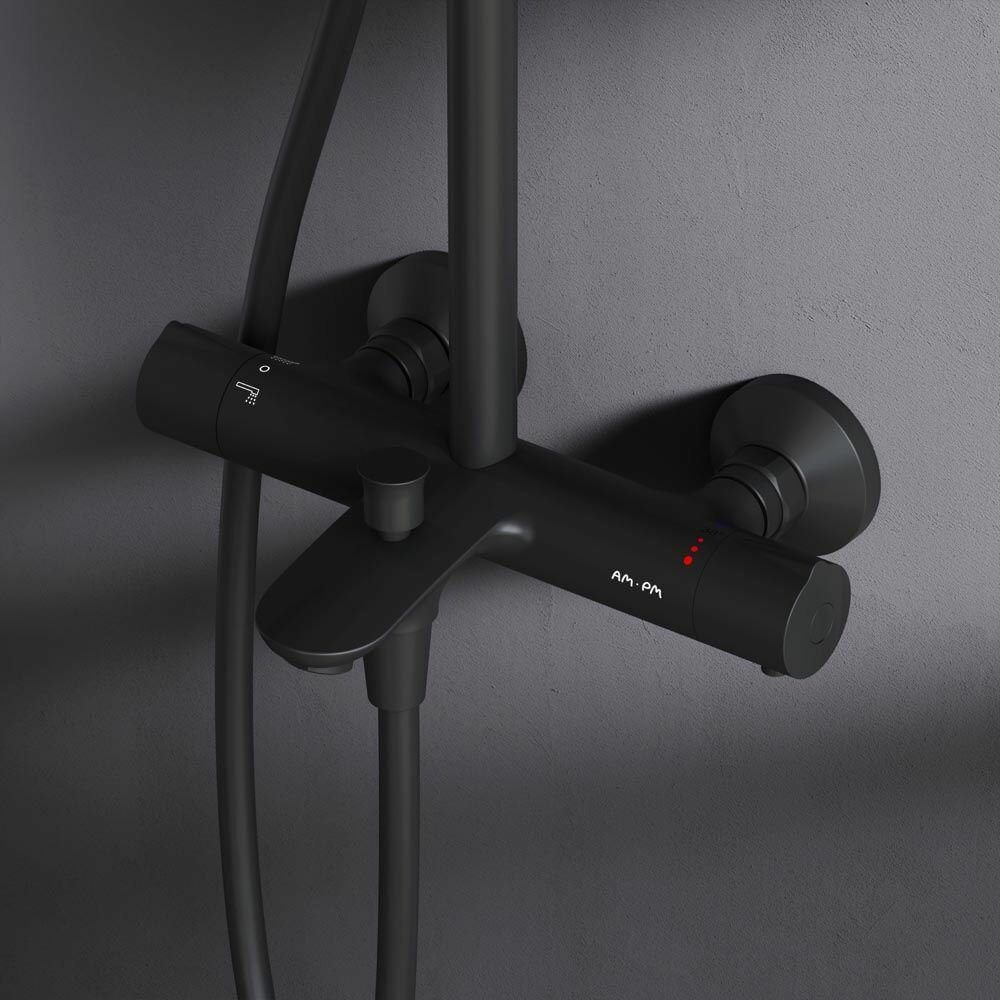 Купить Душевая система с тропическим душем AM.PM Chic с термостатом, 3 режима лейки, латунь, черный