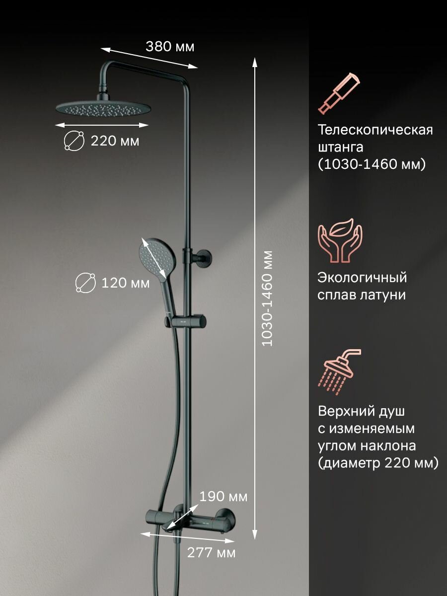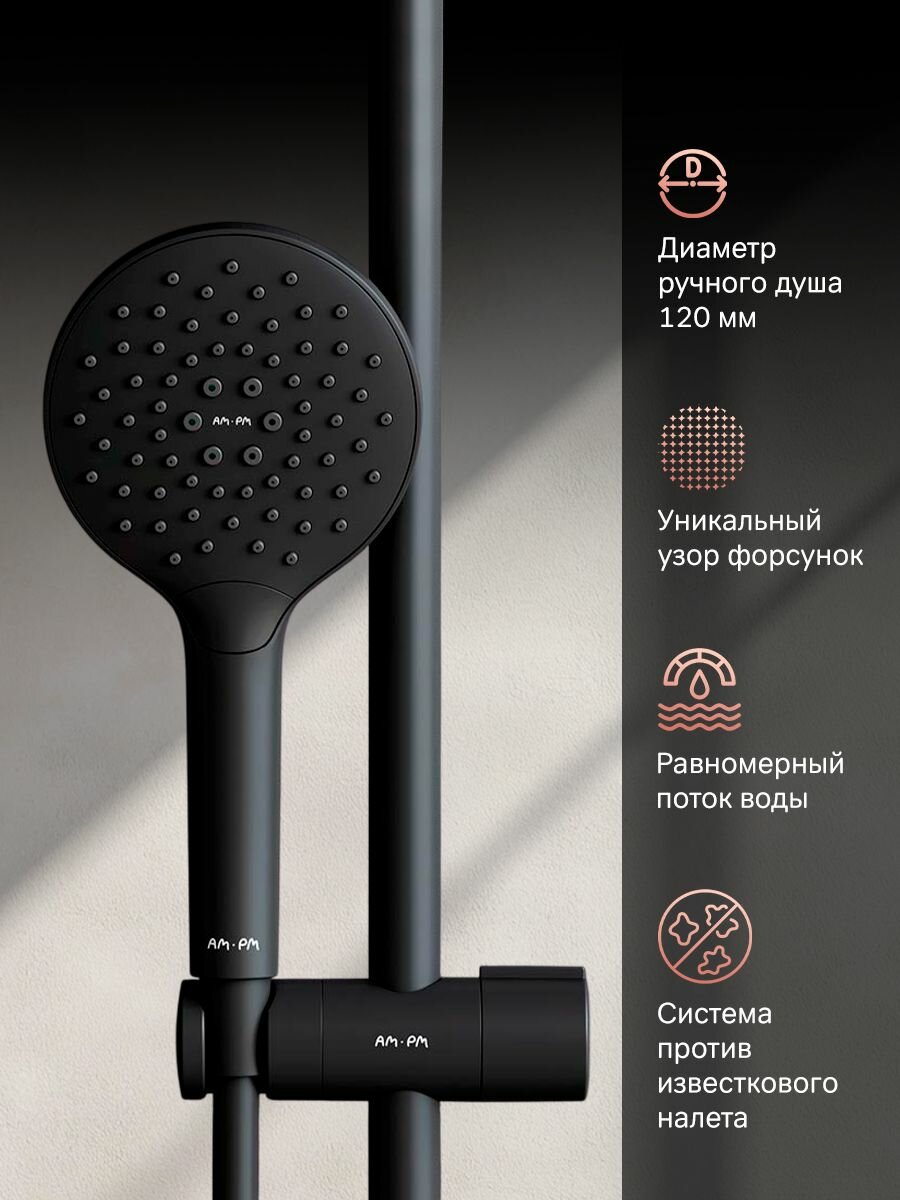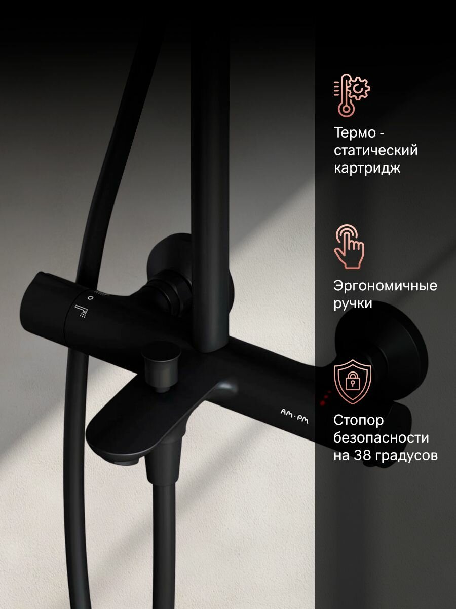 Душевая система с тропическим душем AM.PM Chic с термостатом, 3 режима лейки, латунь, черный интересное: