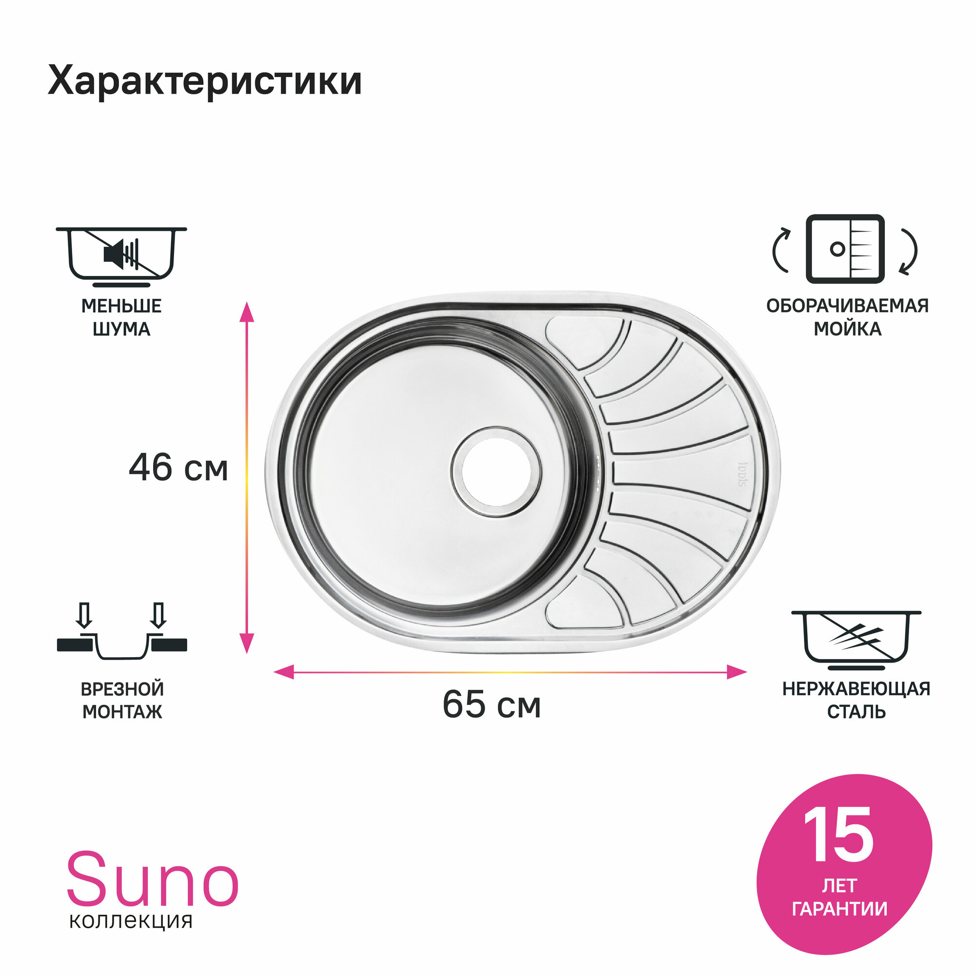 Мойка IDDIS Suno S SUN65SDi77 нержавеющая сталь шелк 650*460 интересное: