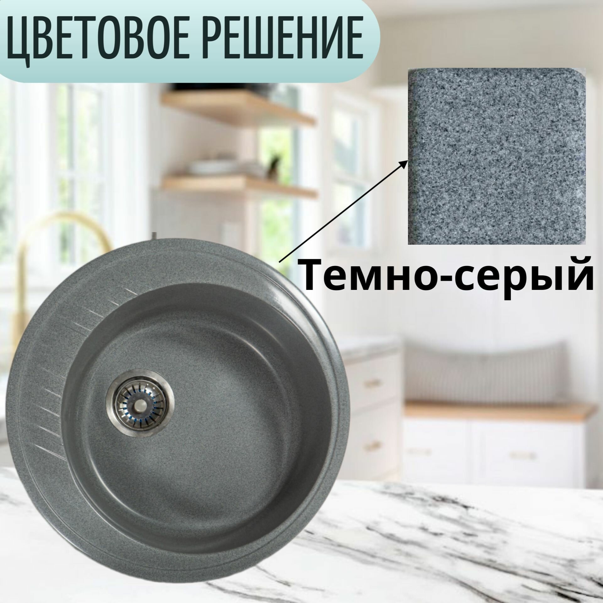 Мойка кухонная каменная SimGran S-5 , Темно-Серый, врезная, круглая, 400х190х505, SimGran интересное: