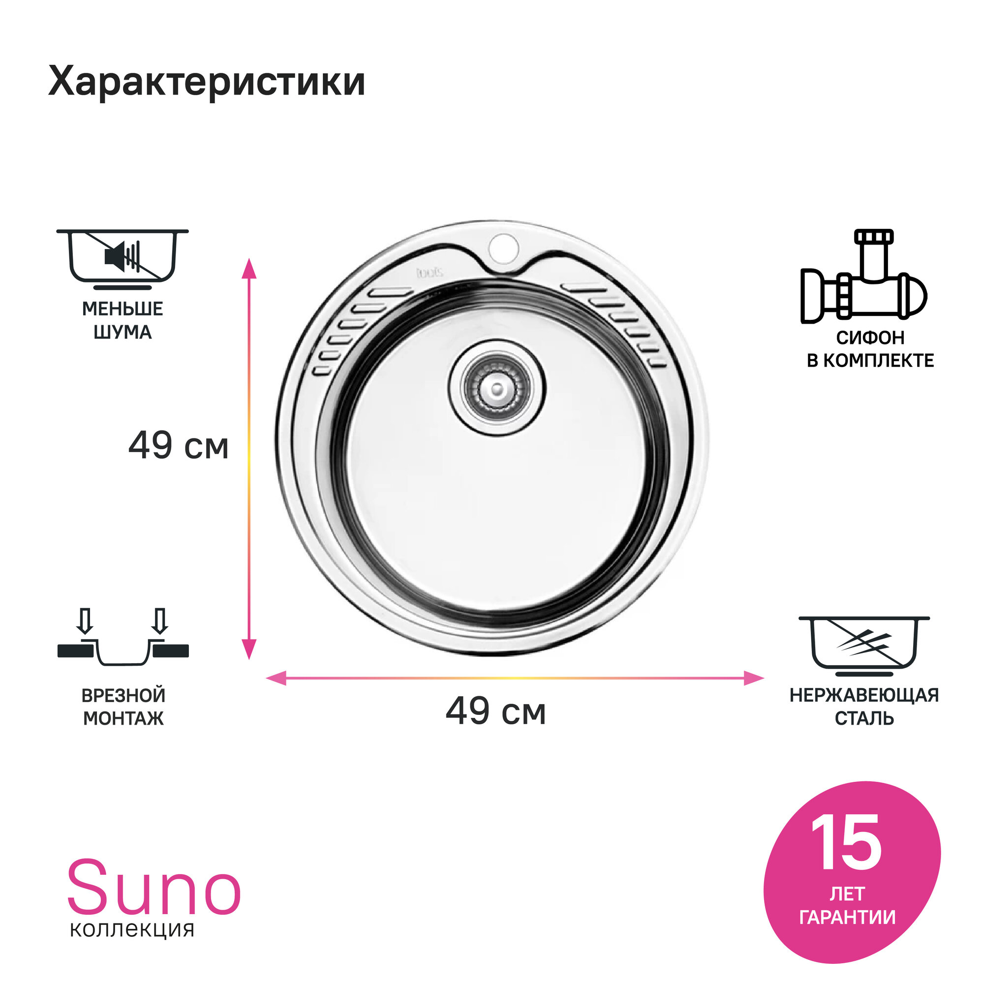 Купить Мойка с сифоном IDDIS Suno S SUN49S0i77S нержавеющая cталь шелк