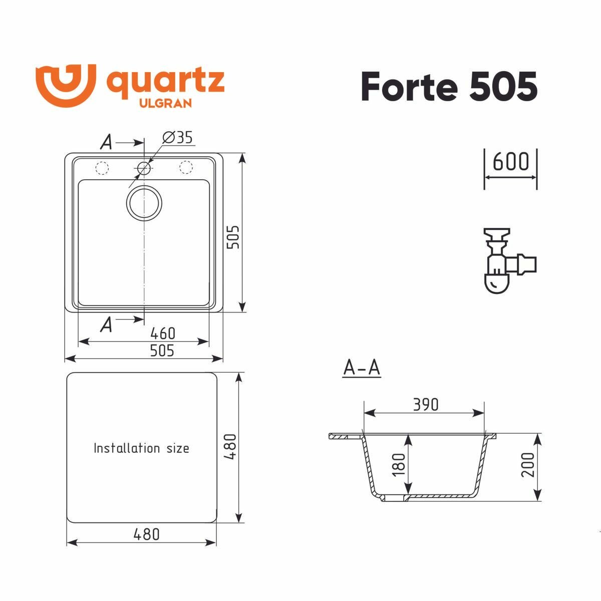 Кухонная мойка Ulgran Quartz Forte 505-09 Асфальт искусственный камень (литьевой мрамор) встраиваемый