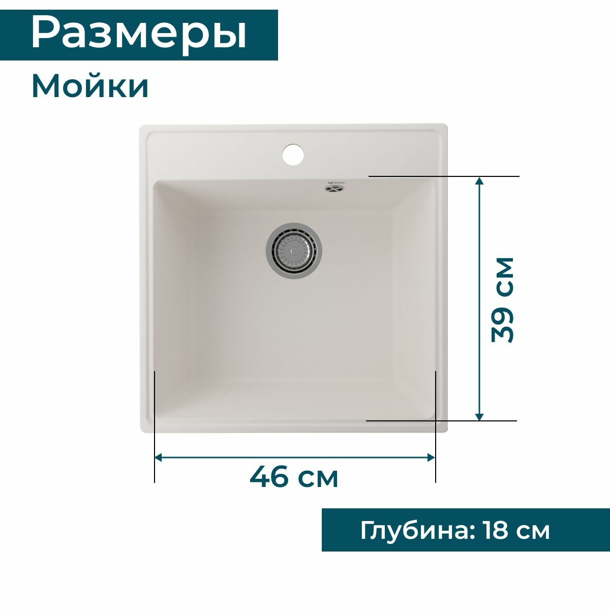 Купить Каменная мойка для кухни врезная на столешницу квадратная ULGRAN Quartz Forte 505 505х505х200 мм кварцевый композит, цвет белый жасмин