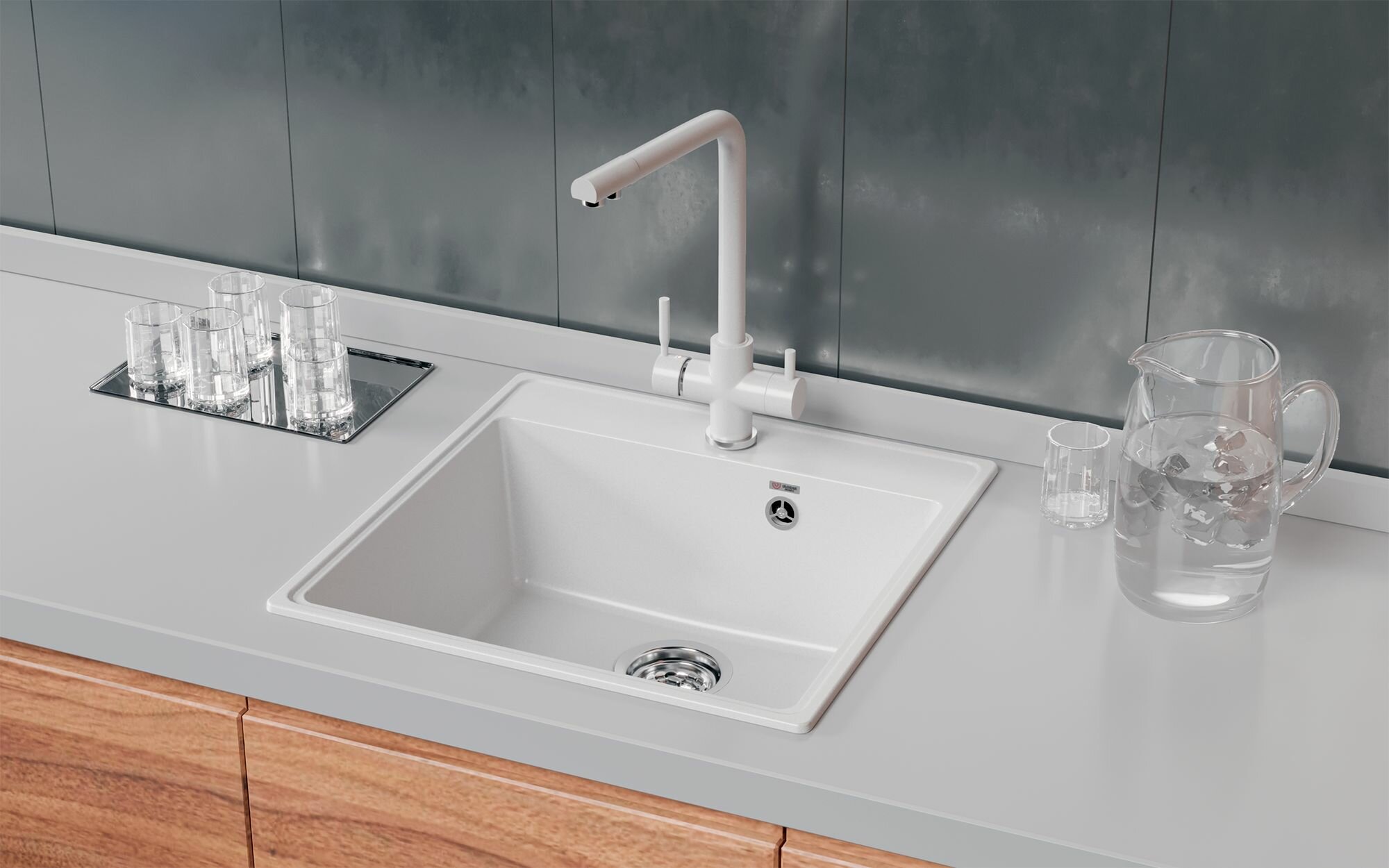 СохранитьКаменная мойка для кухни врезная на столешницу квадратная ULGRAN Quartz Forte 505 505х505х200 мм кварцевый композит, цвет белый жасмин интересное: