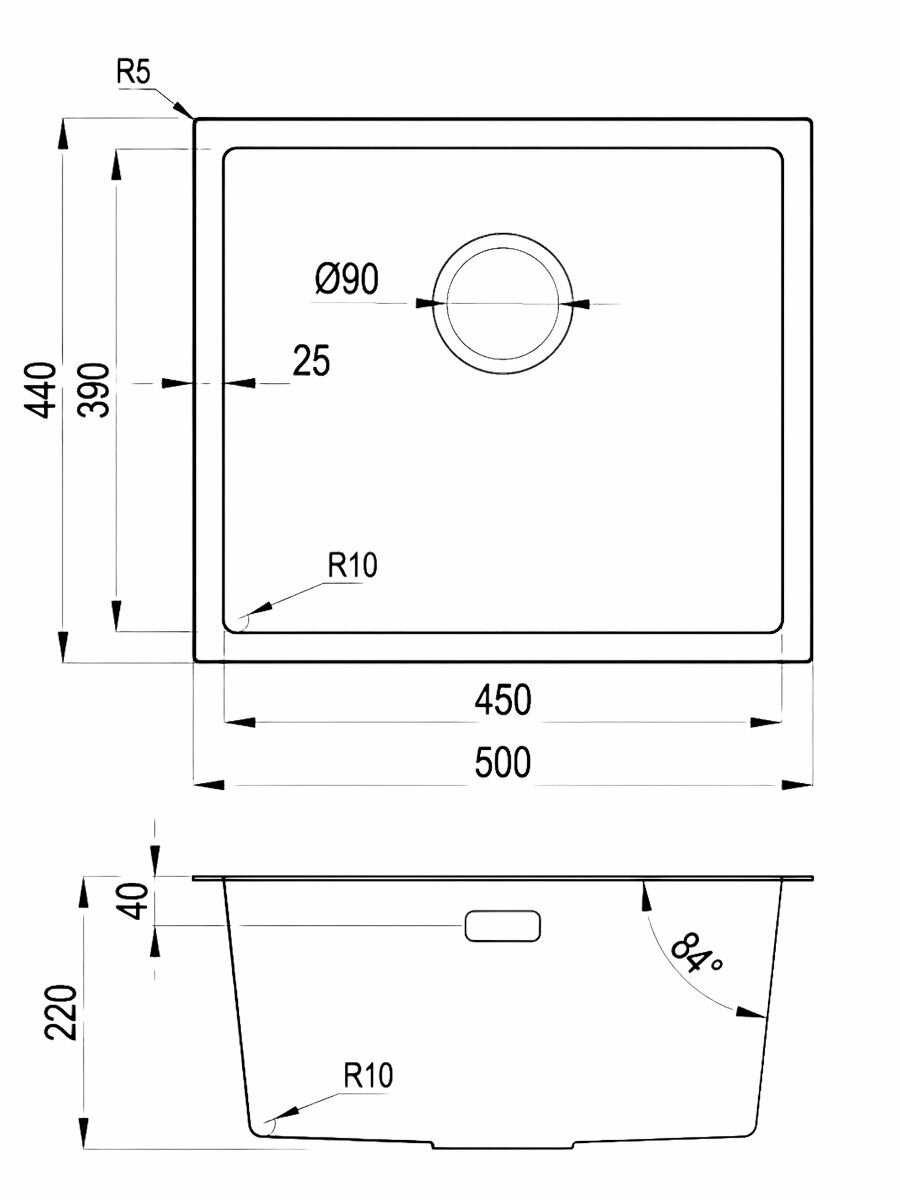 Мойка раковина кухонная из нержавеющей стали под столешницу 50х44 см. Hoffger HFG-5044S ECO сатин прямоугольная