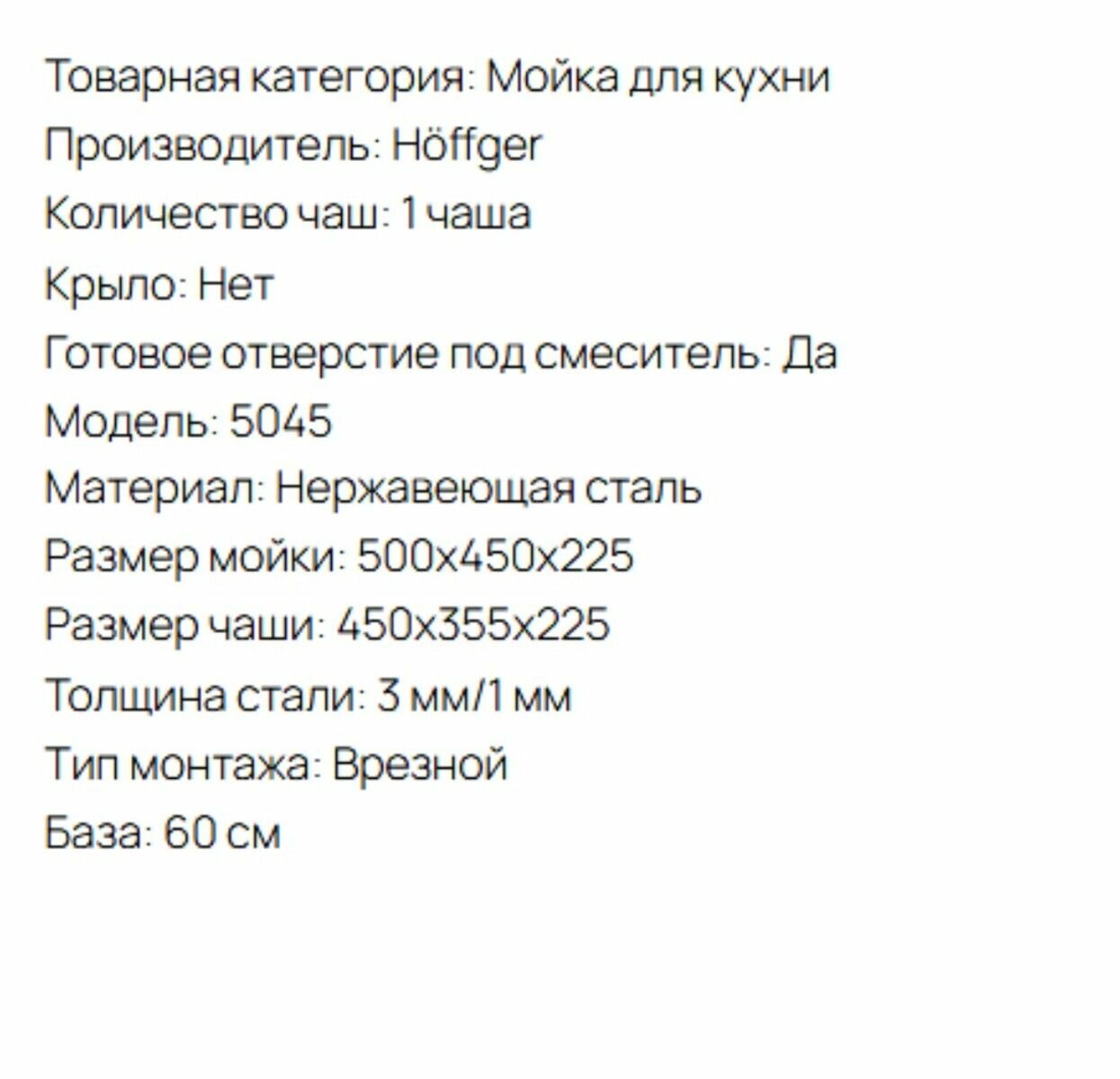 Ниже Вы можете прочитать отзывы на Мойка для кухни HOFFGER 5045 SATIN, ознакомится с подробными характеристиками, посмотреть интересные обзоры и фотографии на Мойка для кухни HOFFGER 5045 SATIN.