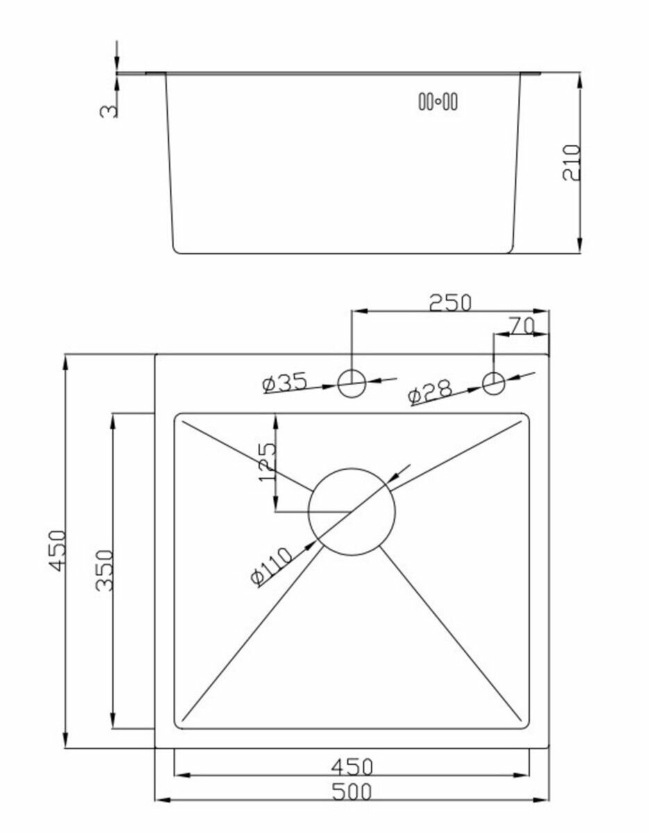 Мойка раковина для кухни из нержавеющей стали врезная 50х50 см. Hoffger HFG-5050TB черный Графит квадратная декор