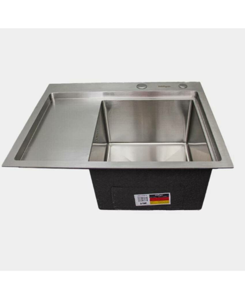 Мойка для кухни из нержавеющей стали прямоугольная с крылом 58х48 см. Hoffger HFG-5848S-L Satin левая