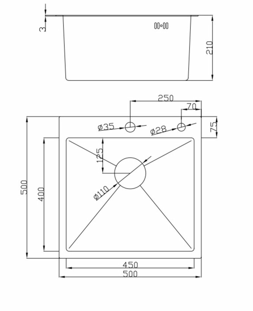 Мойка раковина для кухни из нержавеющей стали врезная 50х50 см. Hoffger HFG-5050TB черный Графит квадратная декор