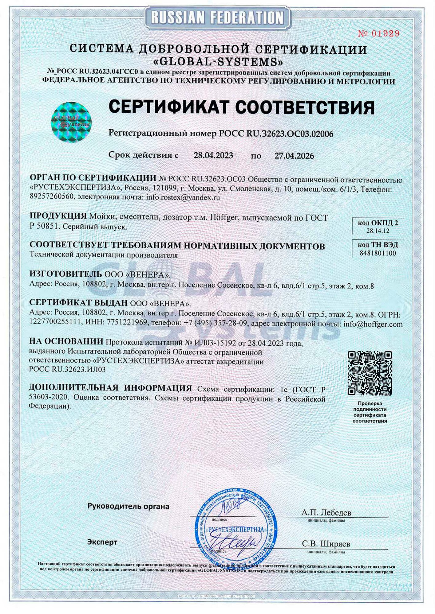 Мойка для кухни Hoffger 5044 Satin (Сталь сатин), 50x44, нержавеющая сталь, монтаж врезной / в уровень / под столешницу