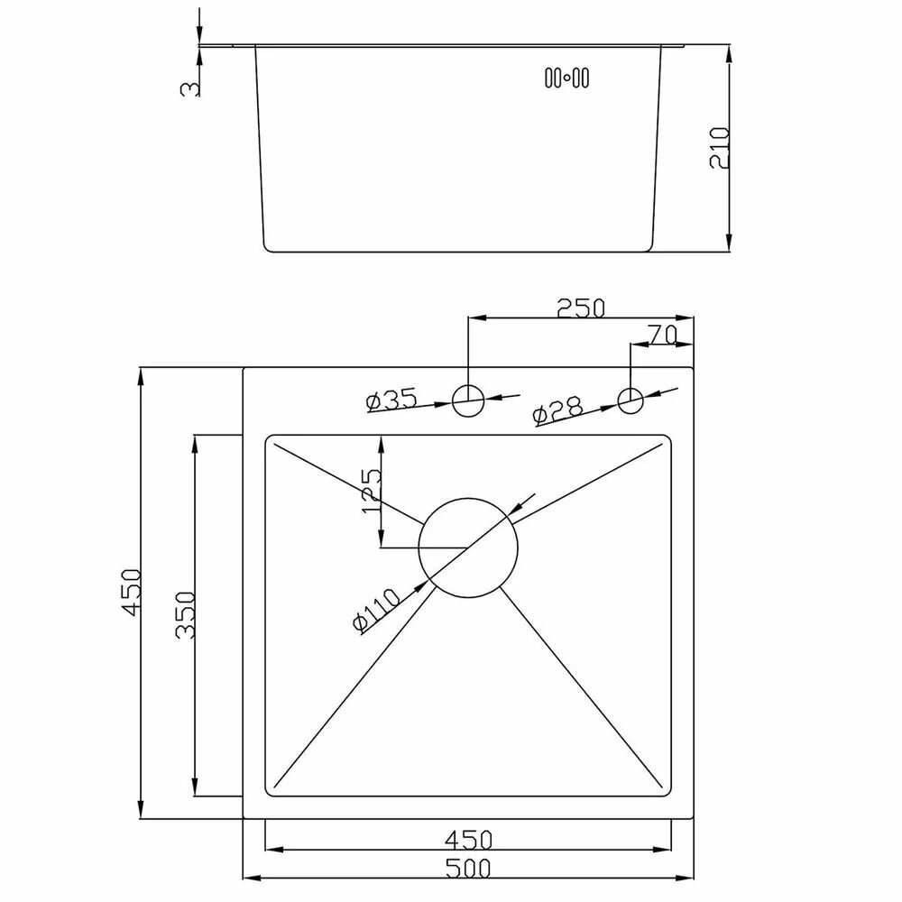 Мойка раковина для кухни из нержавеющей стали врезная 50х50 см. Hoffger HFG-5050TB черный Графит квадратная декор
