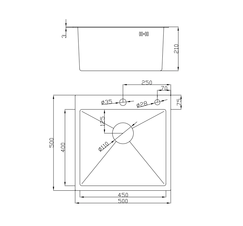Мойка 5050 MELANA ProfLine 3,0/200 сатин бронза врезная квадратная D5050HC