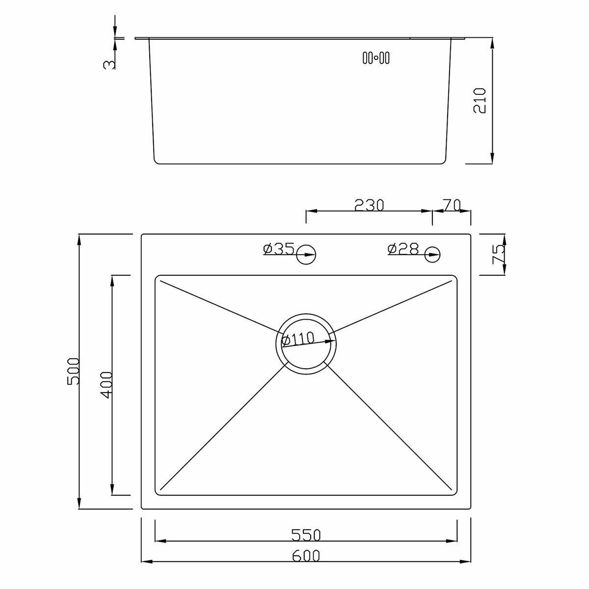 Врезная кухонная мойка LEX Maury 510