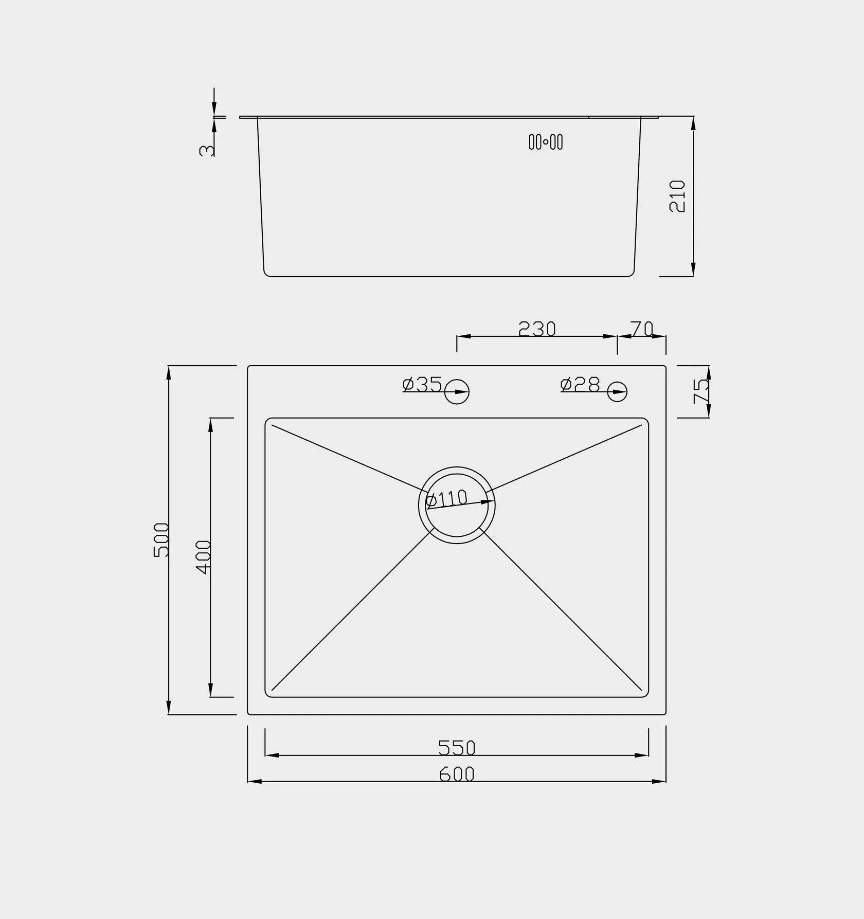Мойка для кухни из нержавеющей стали врезная прямоугольная 60х50 см. Hoffger HFG-6050TB ECO черный графит декор