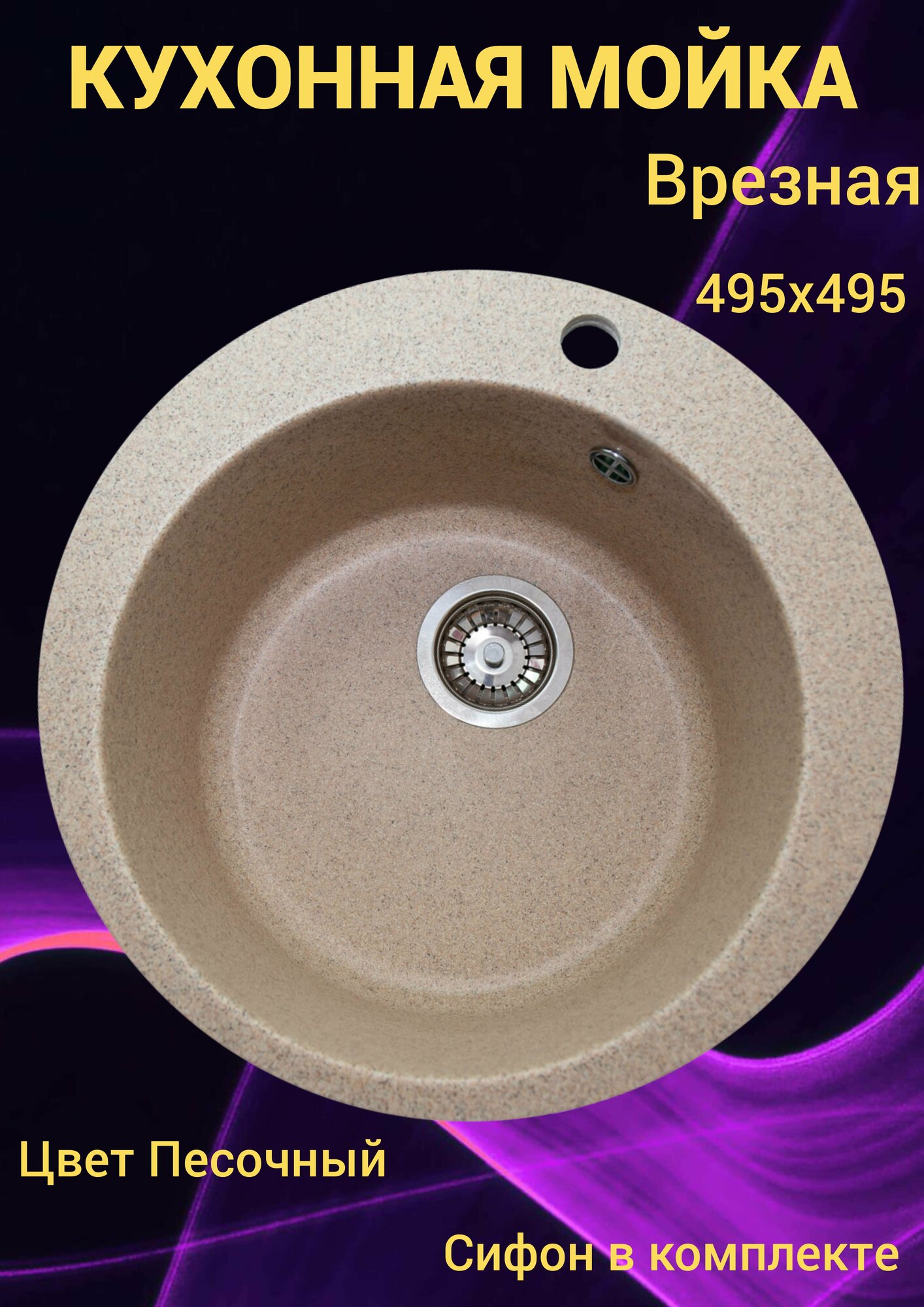 Мойка кухонная круглая GRANDluxeGARANT G-11 песочная / мойка на кухню / раковина на кухню интересное: