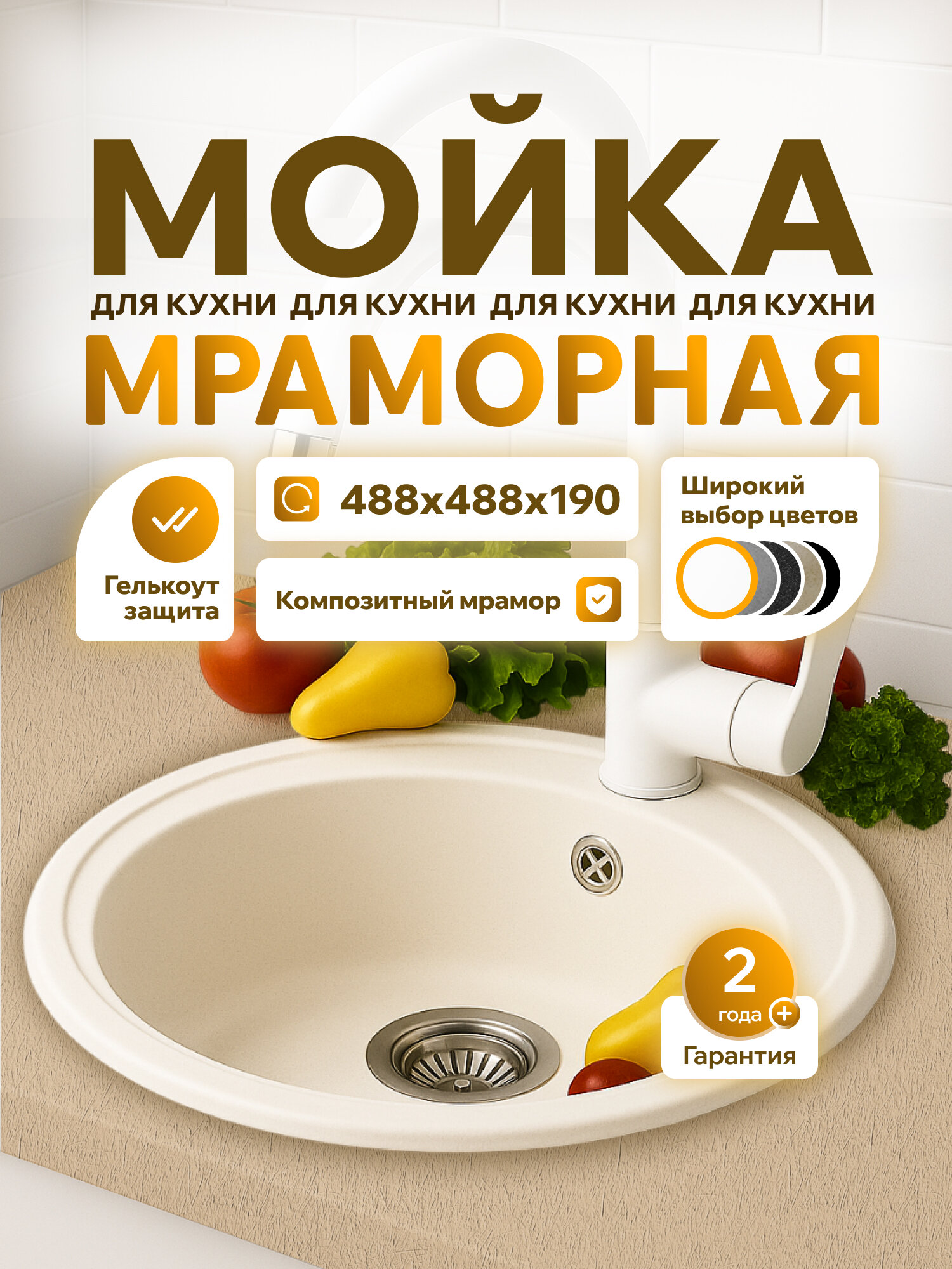 Кухонная мойка Карельский камень модель 150 (575*470) Q6 Слоновая кость