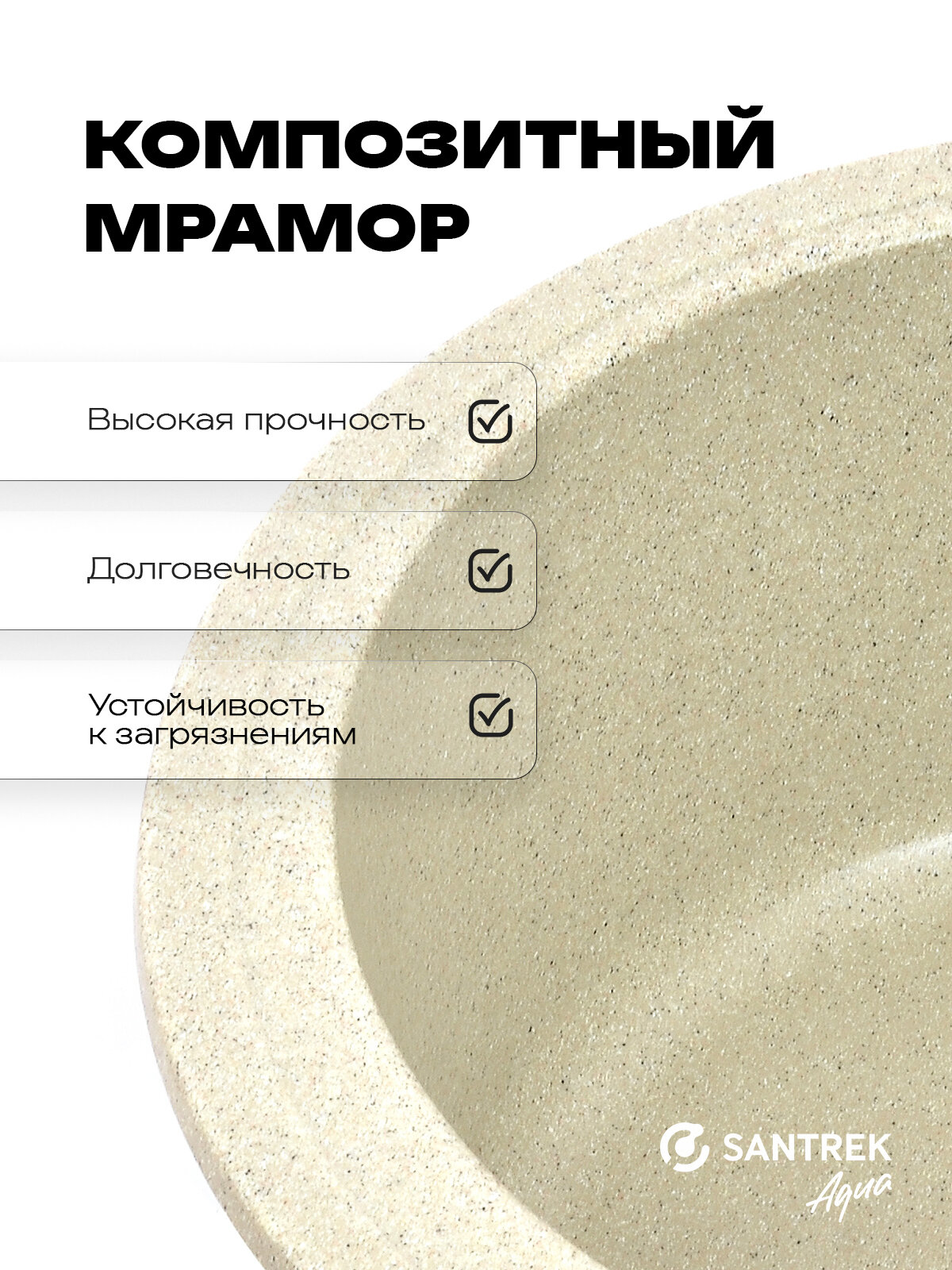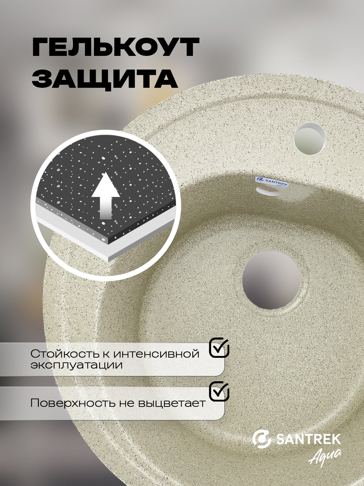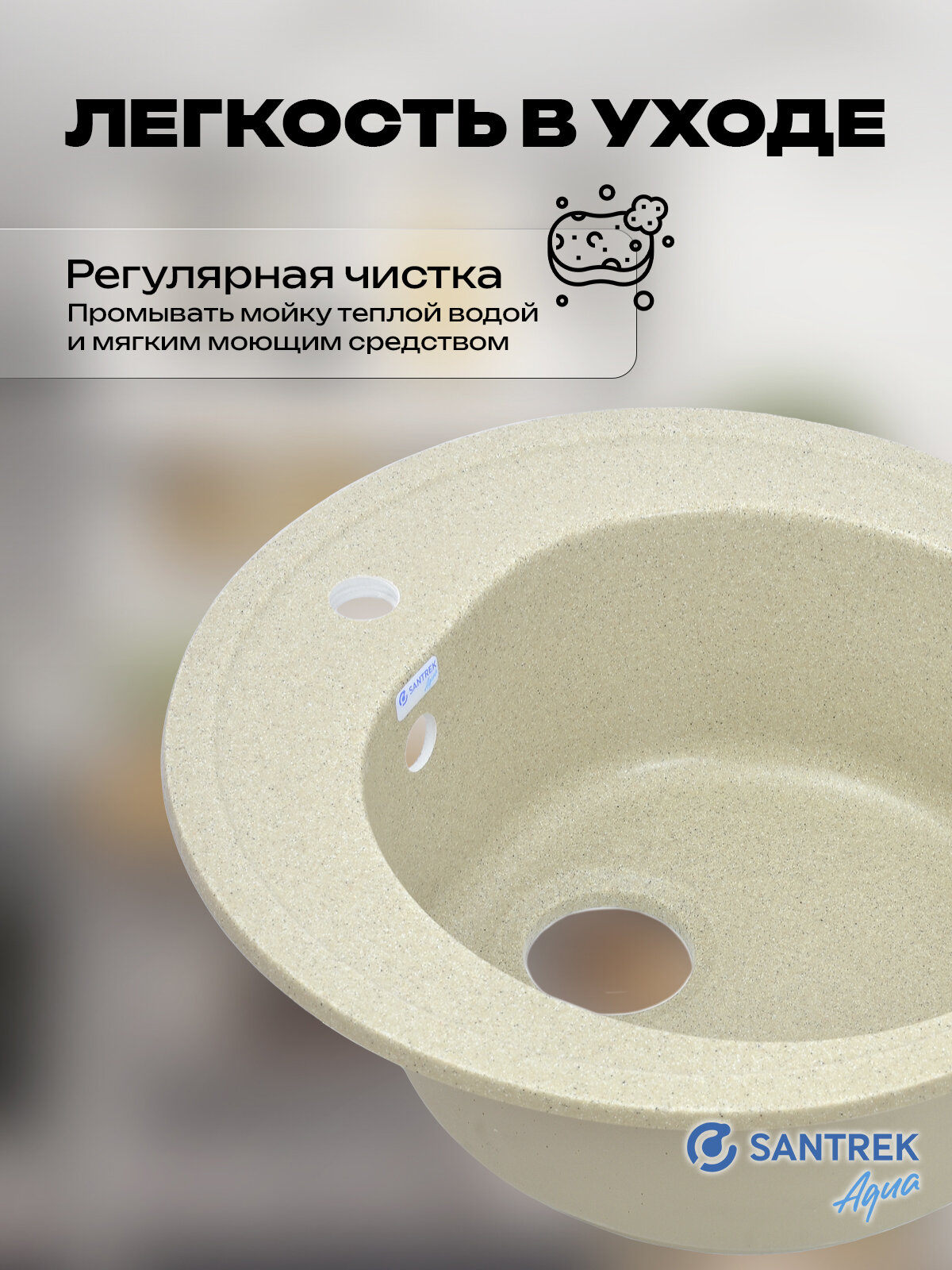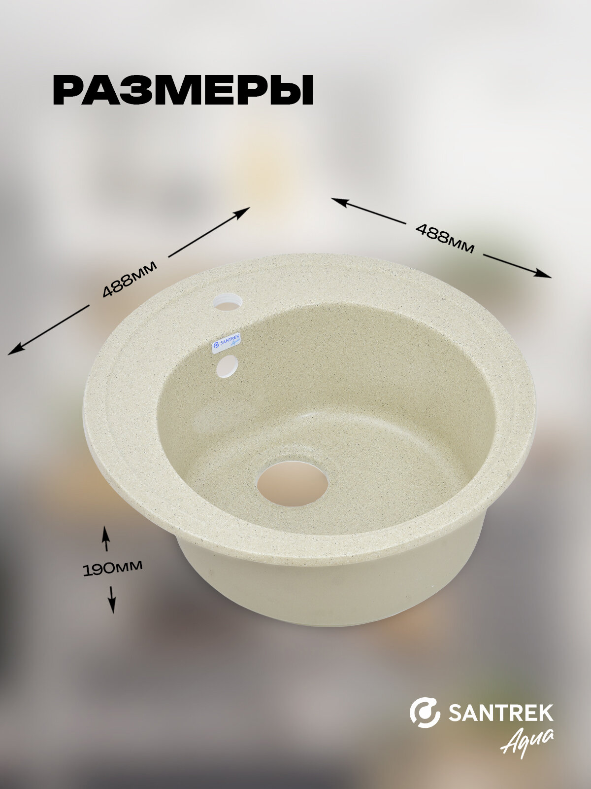 Мойка SANTREK AQUA ROUND SA-R510 D510 мм, круглая (песок-302) (без сифона) интересное: