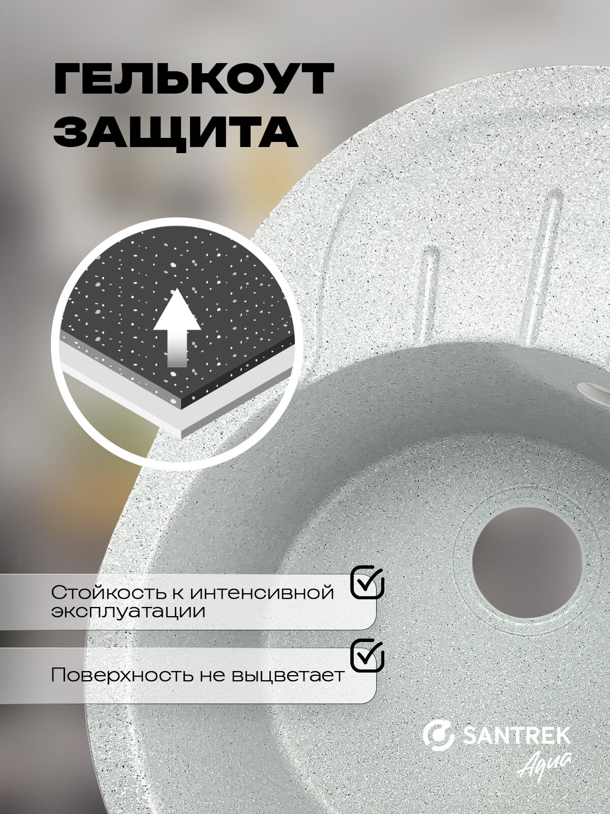 Мойка SANTREK AQUA ROUND SA-R580L чаша + крыло 580*450 мм (серый-310) (без сифона) интересное: