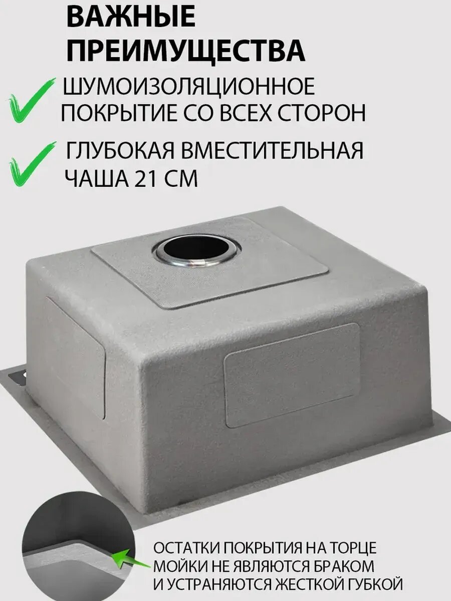 Мойка для кухни WARWOLF 50 x 50, нержавеющая сталь, квадратная, глубина чаши 21см интересное: