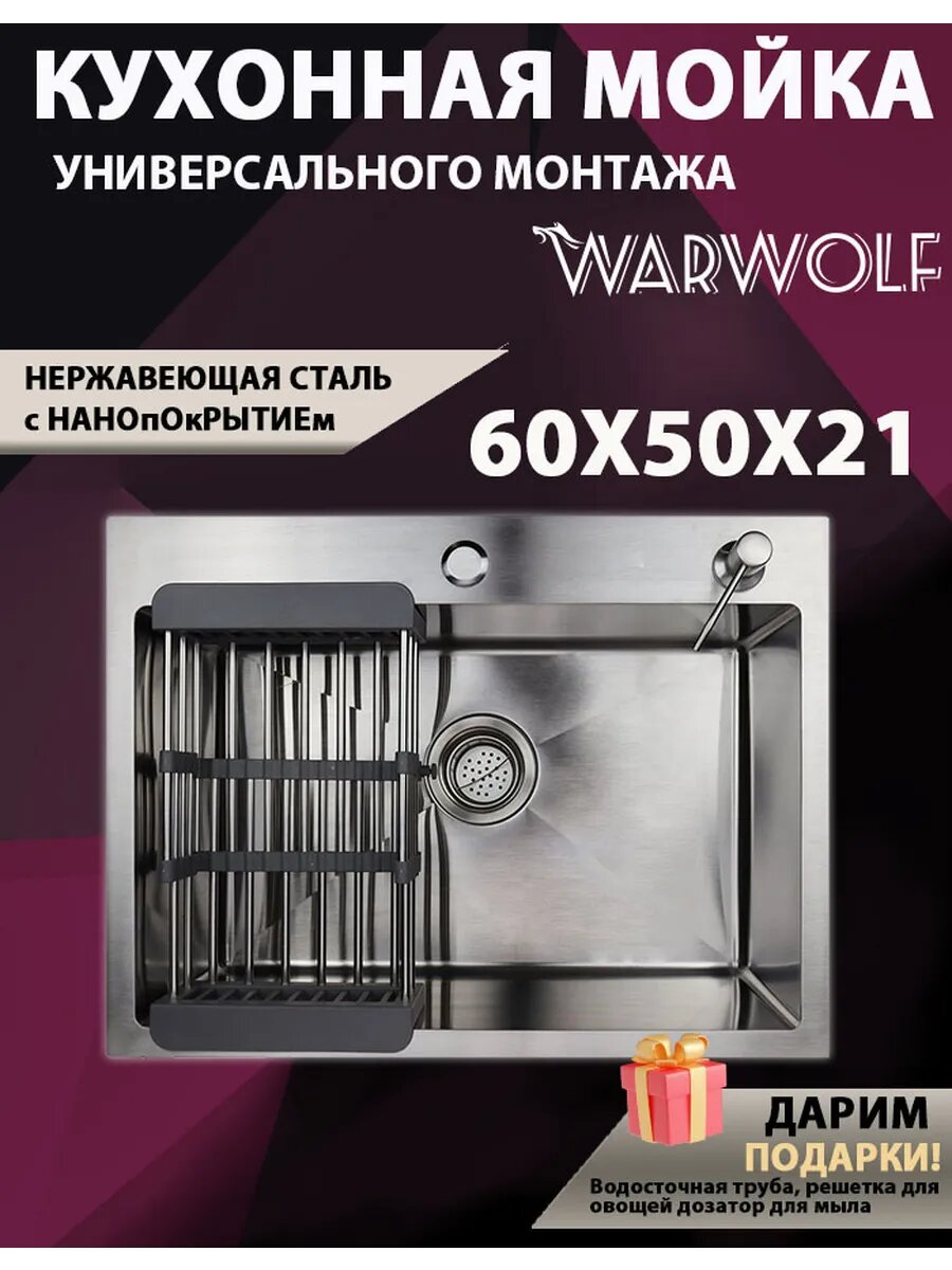 Мойка кухонная WARWOLF, нержавеющая сталь, серебристая, 60х50 см интересное: