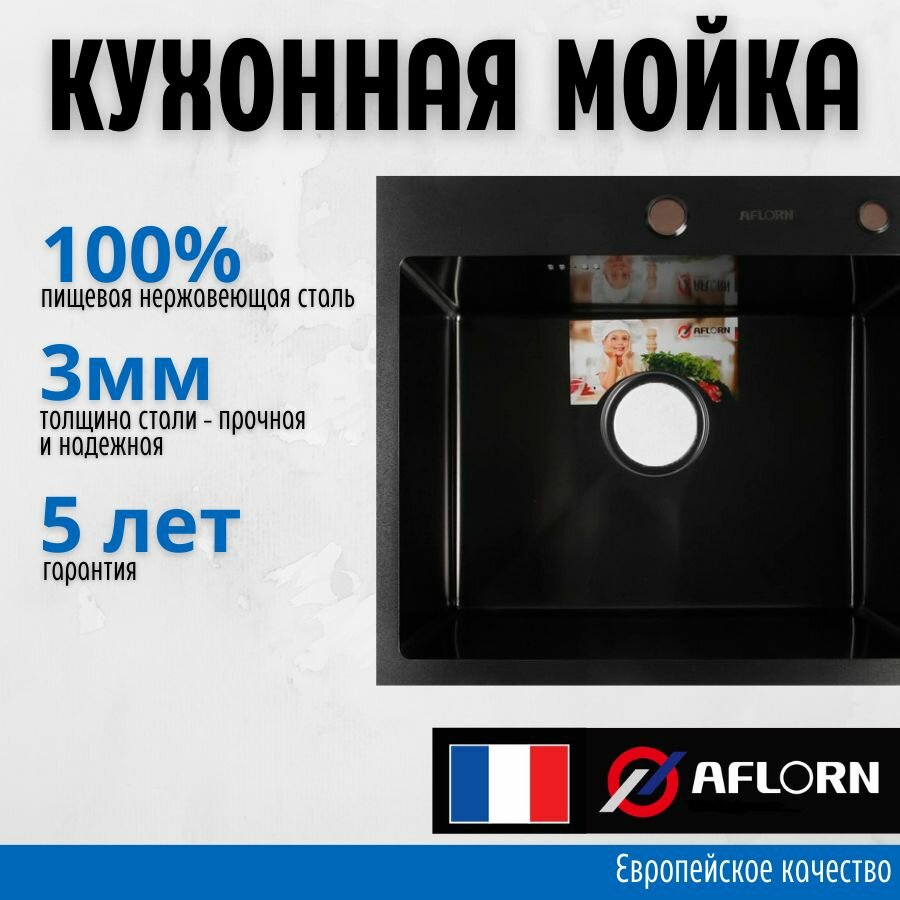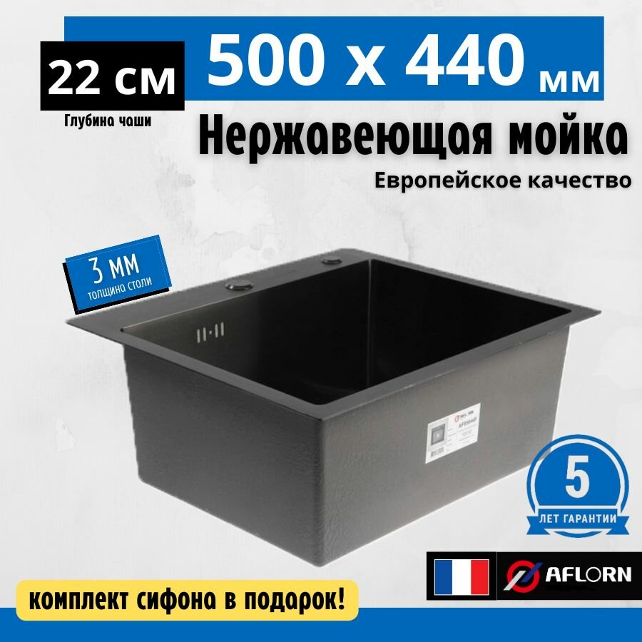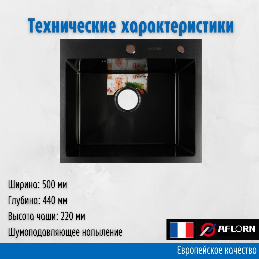 Кухонная мойка премиум класса 50х44, толщина 3.0х0х8 Нержавеющая сталь, графит Aflorn AF95044F интересное: